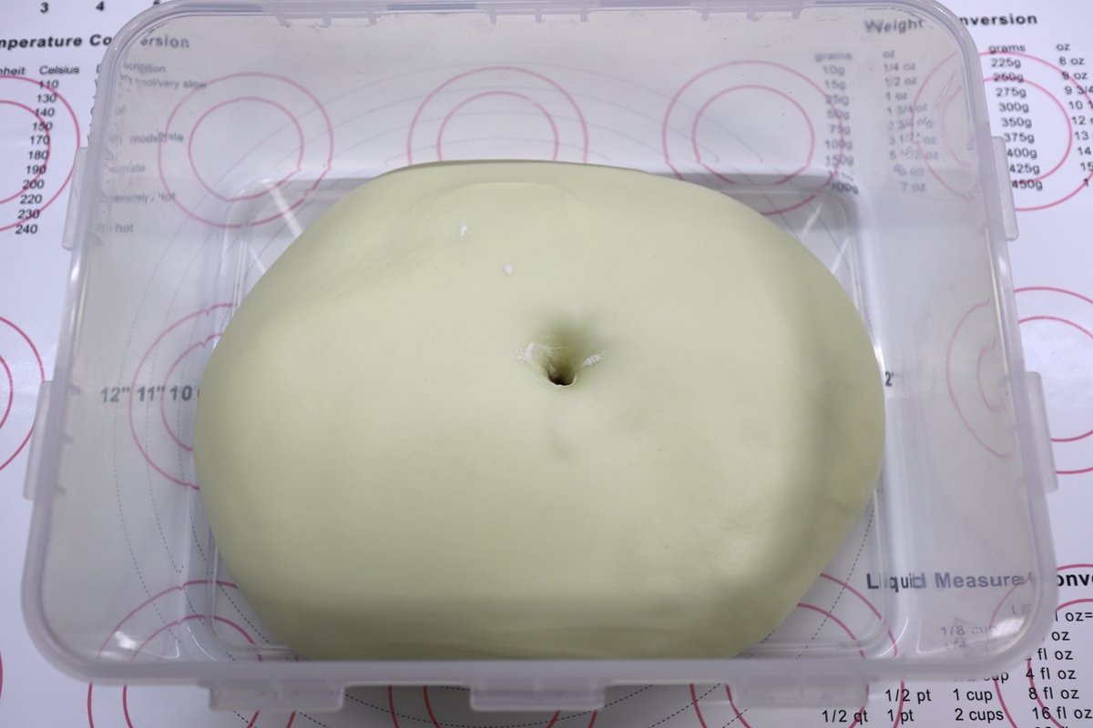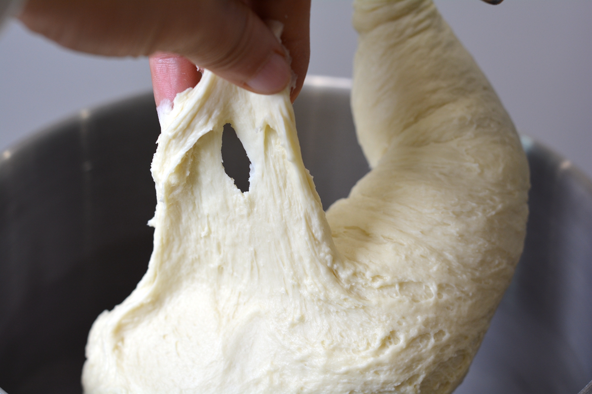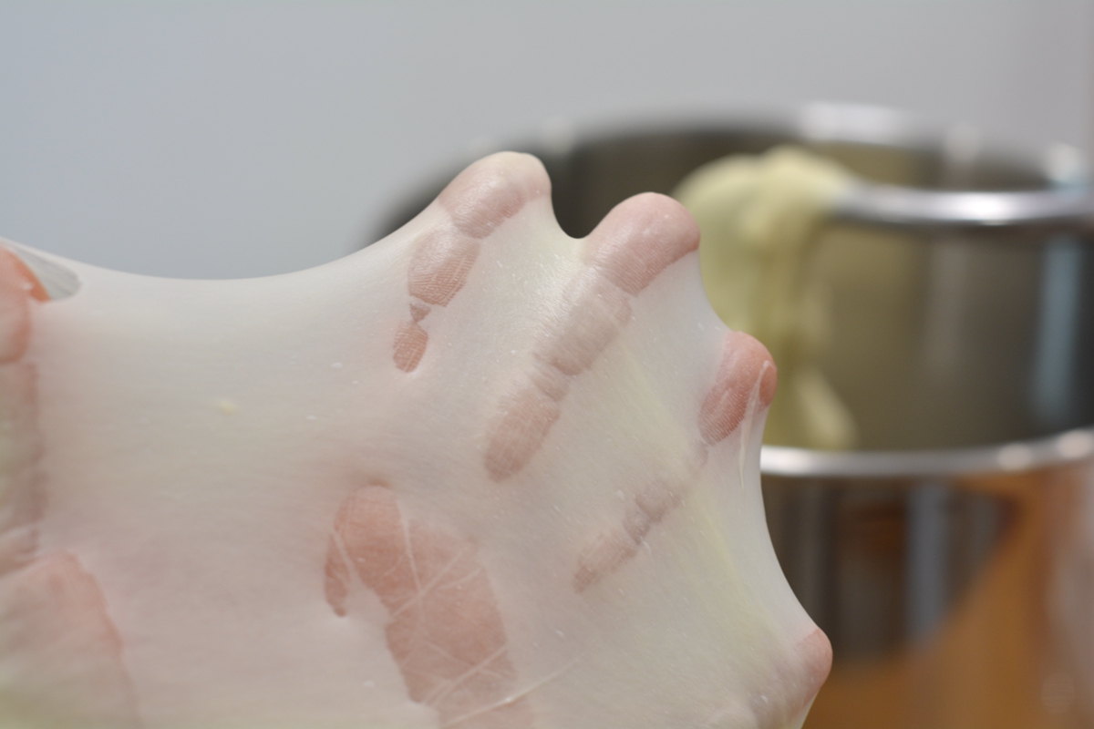 面团的温度要控制在24-26度之间为宜。想夏天做吐司,别忘了降低室温,也要降低所有材料的温度。所有材料提前几个小时放冰箱冷藏,如果有条件的话,把揉面桶也一并冷藏,或者准备几个冰袋、冷毛巾,只要能想到的降温方法都可以用上。这样做的目的是为了抑制面团的上升温度,延缓酵母的发酵,以尽快形成筋度。要不然呢?酵母都开始起作用了,而面筋还没形成,就影响了吐司的口感。