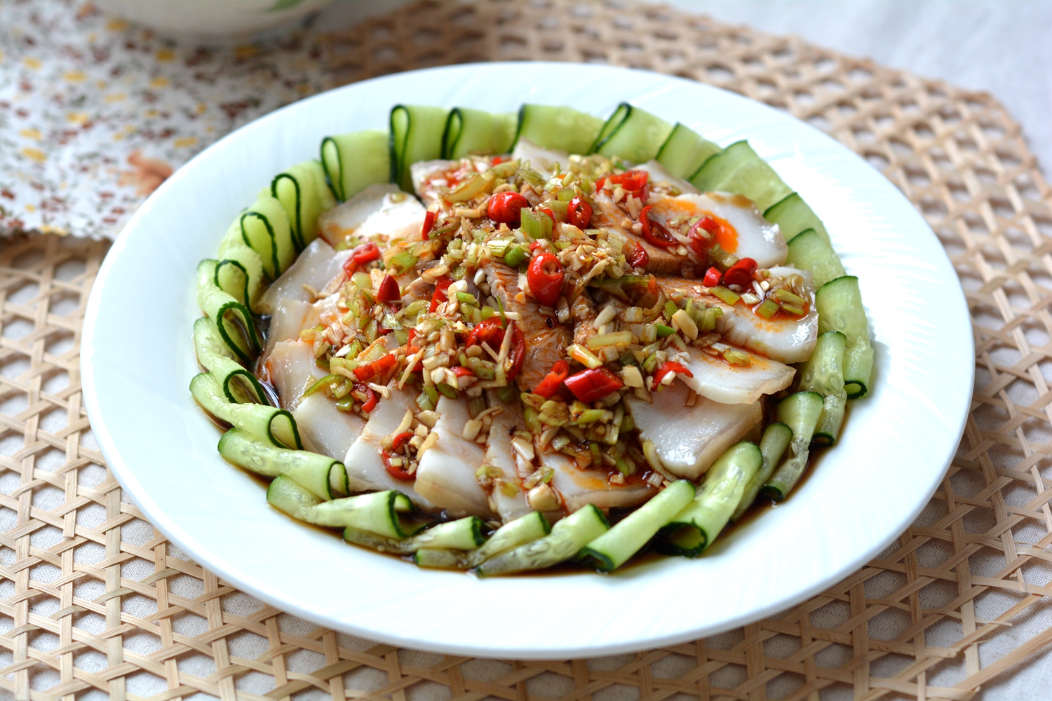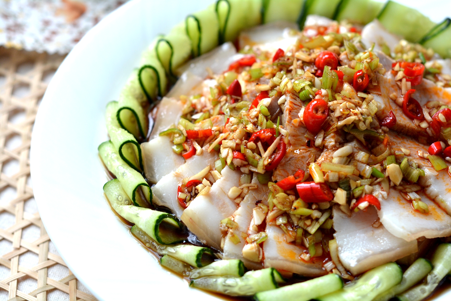 8. 浇在白肉黄瓜片上,最后淋辣椒油,开吃吧!