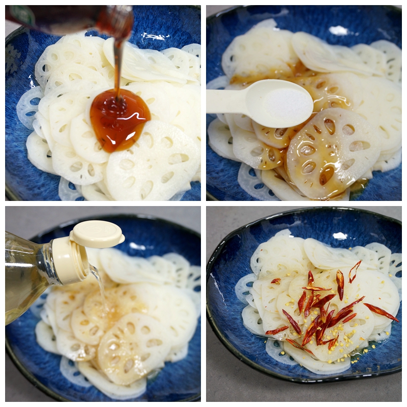 4. 藕片在开水锅里煮变色,捞出,充分过凉水,可保持脆嫩口感;