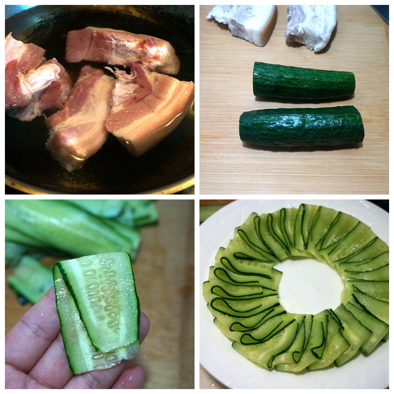 5. 将白肉切薄片,至于多薄,看个人喜好及刀功了;然后将白肉摆盘;