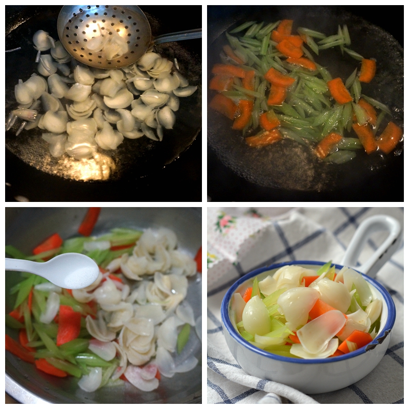 材料:百合、大芹菜(用西芹更好噢)、胡萝卜、盐