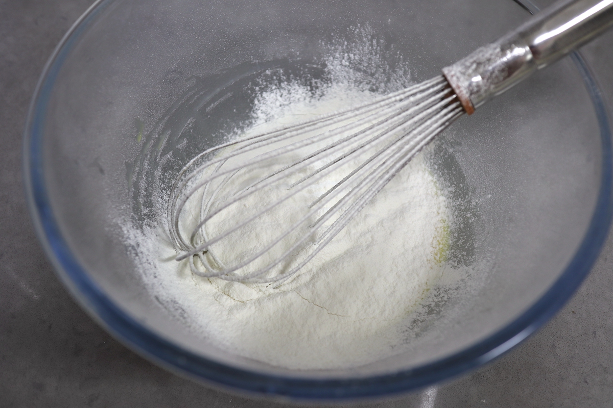 2. 面粉量可以在40-45克之间,看蛋黄的大小,面粉吸水率,及喜欢的口感来调整,以面糊能顺畅垂落下来为准,干点儿稀点儿都不是问题;