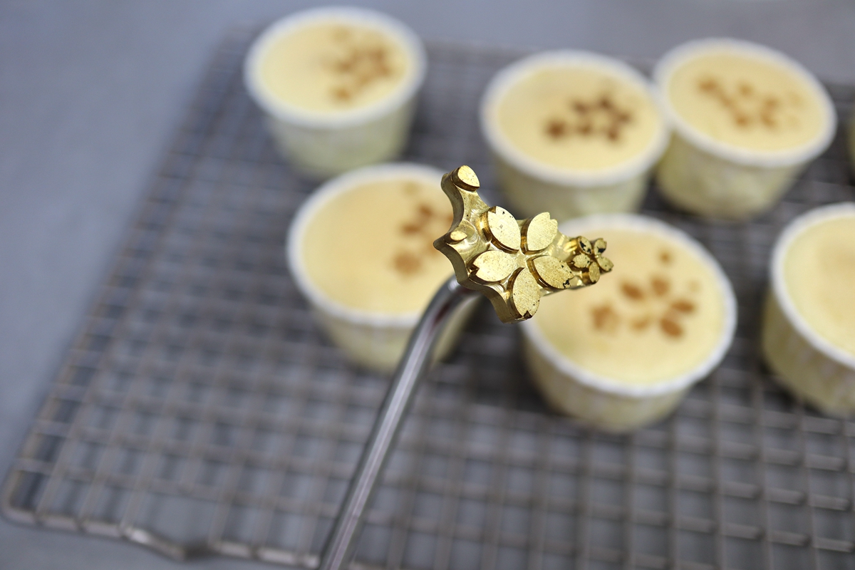 15. 我用了铜烙模,在蛋糕表面烙上了几朵小花,普通的蛋糕一下子就变得精致漂亮了。