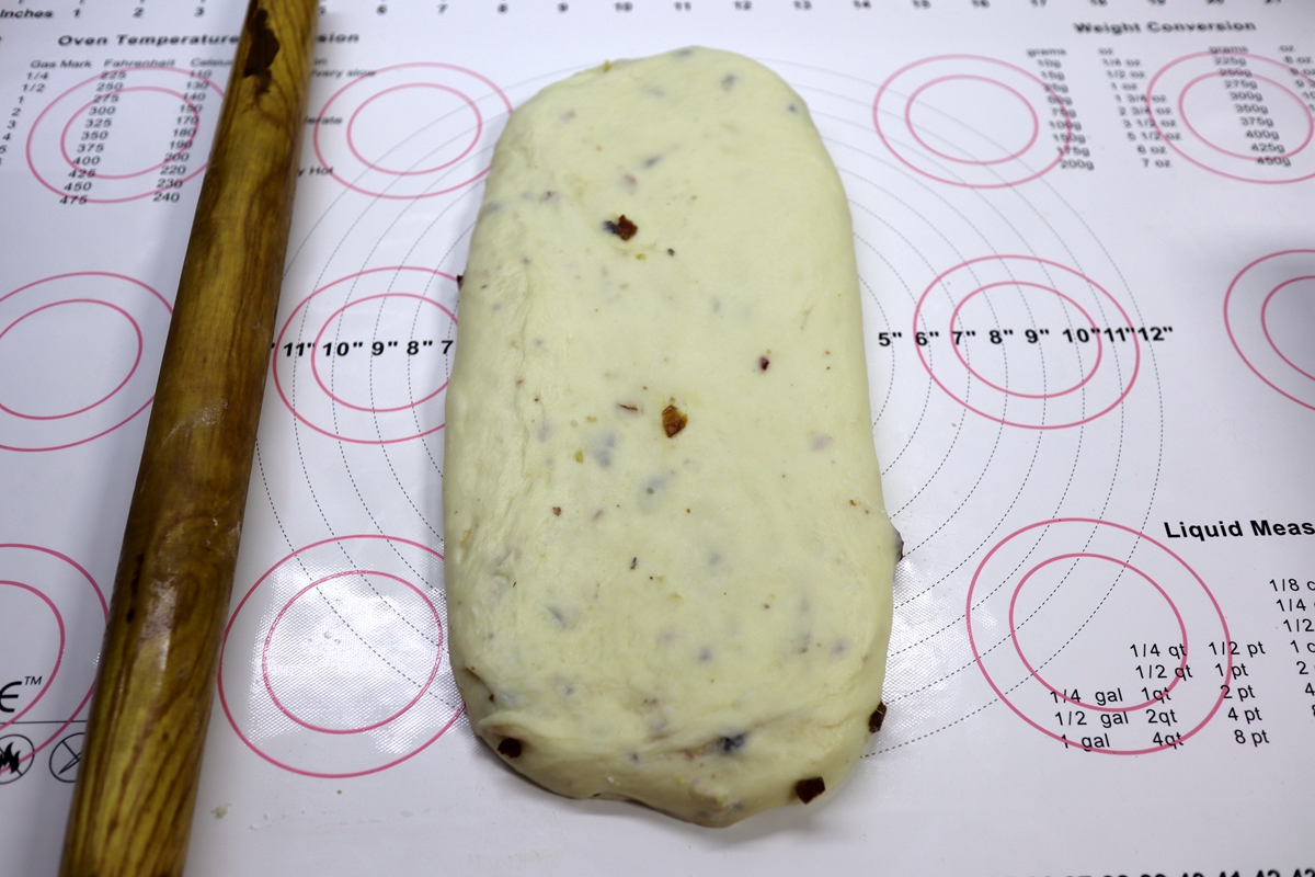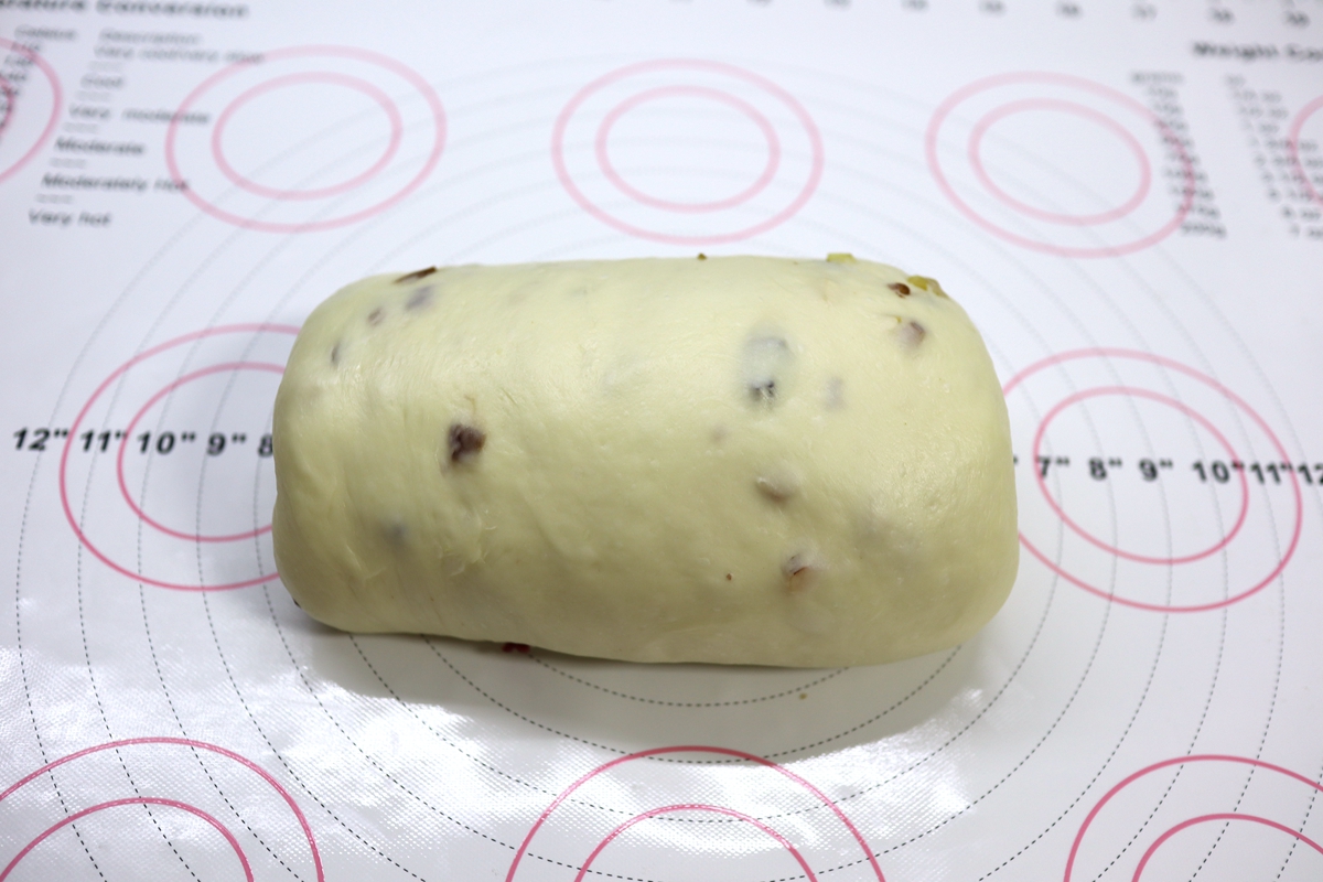 9. 从上向下卷成卷,接口朝下;经过这两次整形,即使面团揉得不是太完美,也能够弥补筋度上的欠缺;