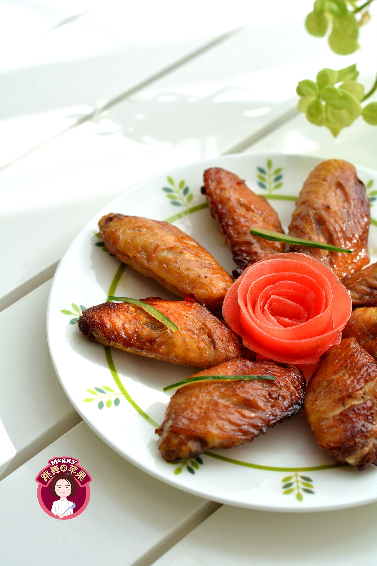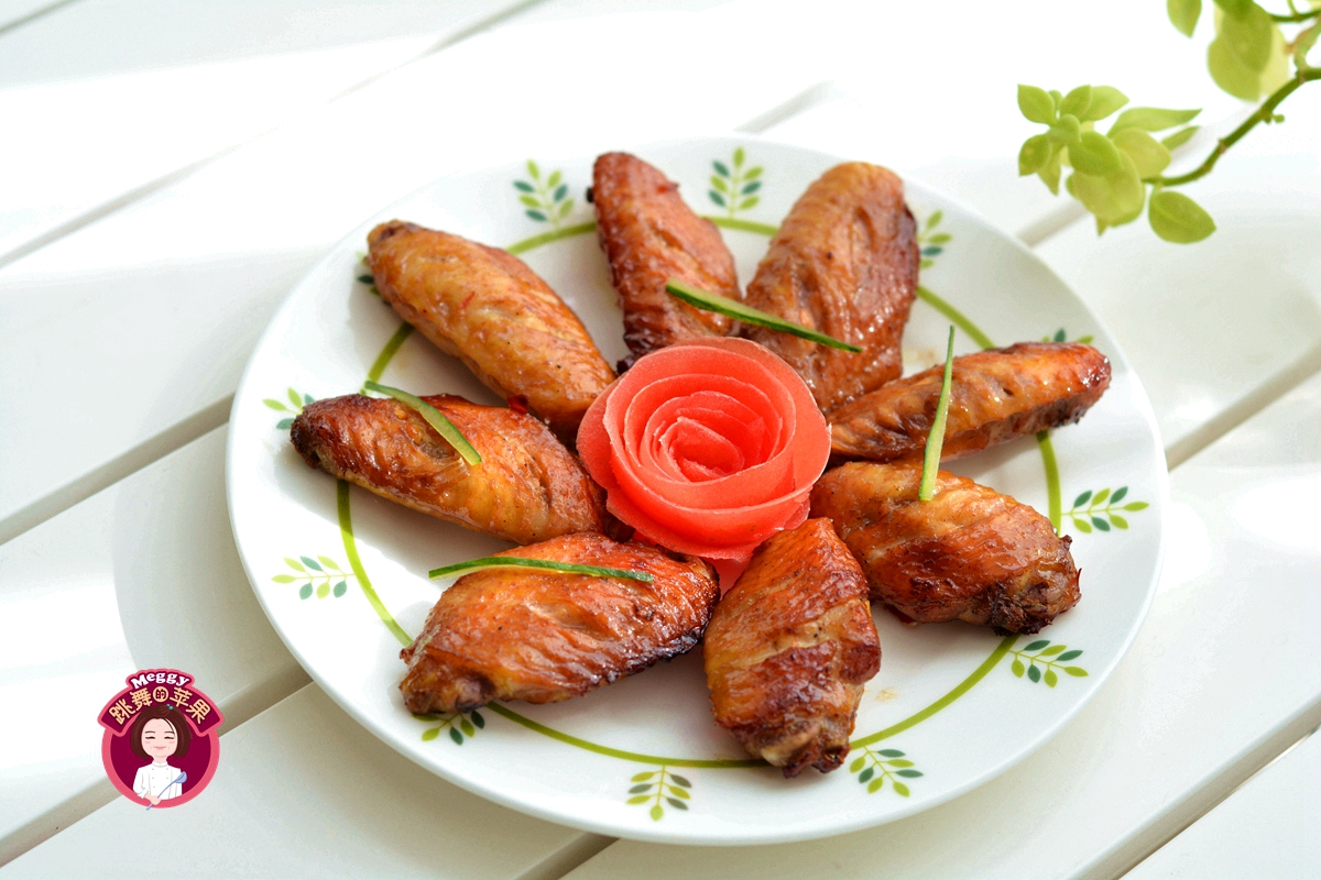 烤好的鸡翅摆个盘,再把西红柿削皮围成一朵花,很简单的一道菜是不是有了一点小清新?