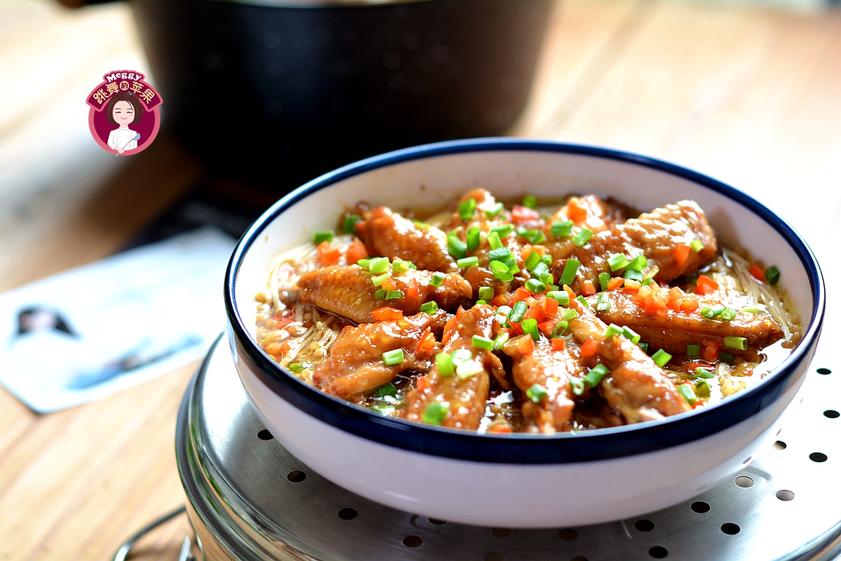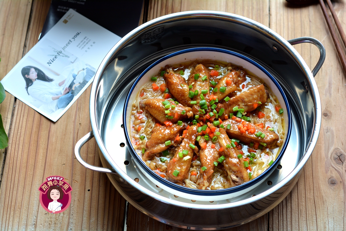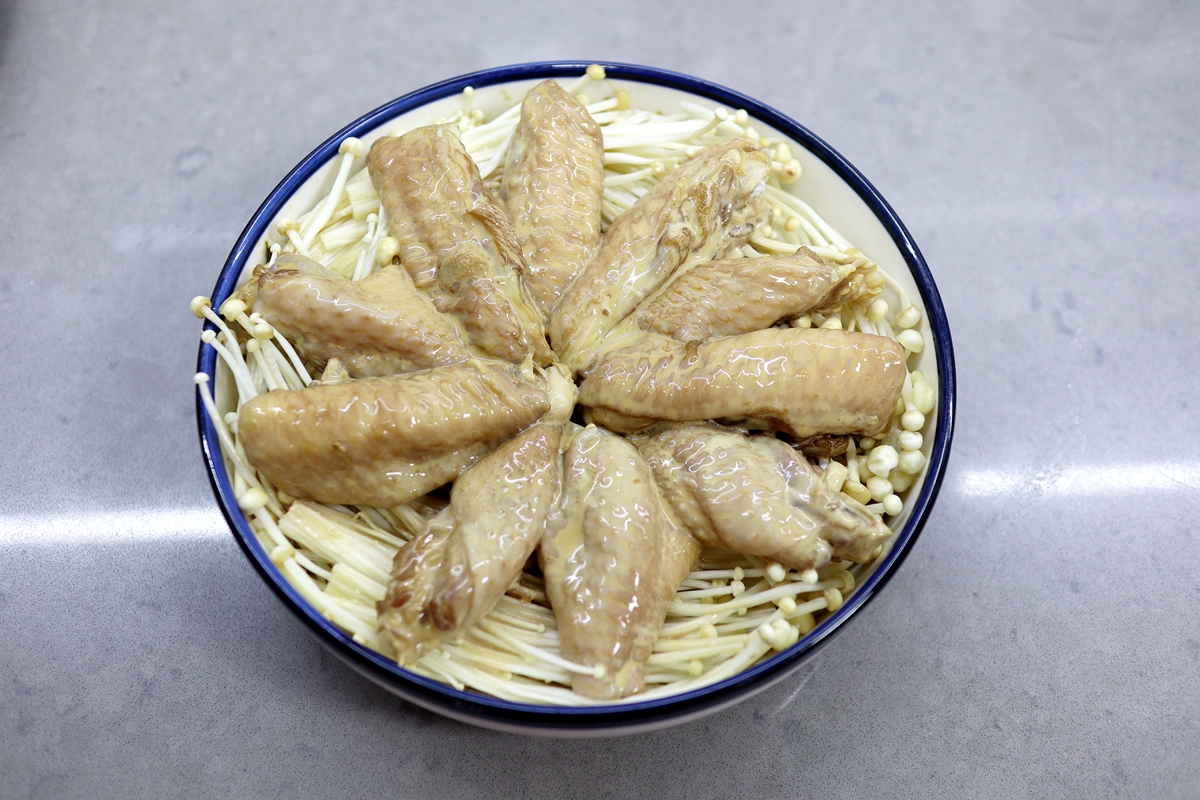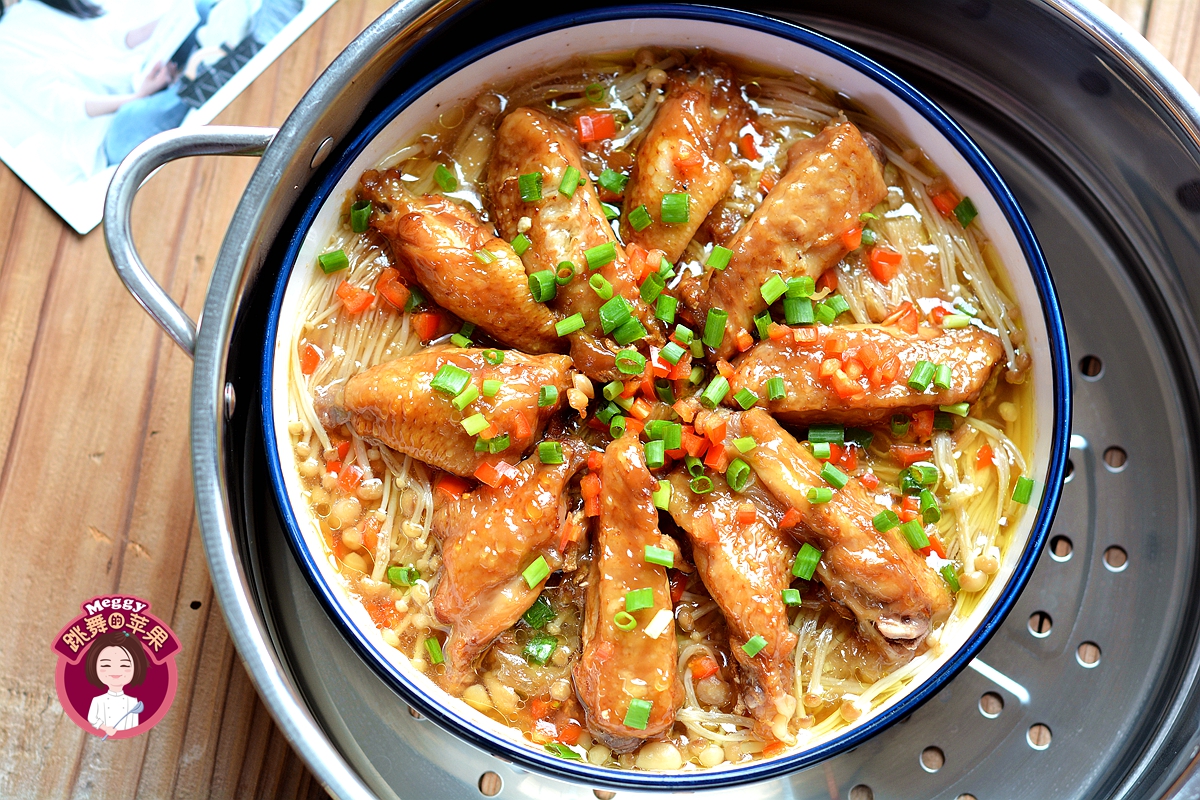 美食蒸鸡翅蒸菜金针菇辣椒 |
