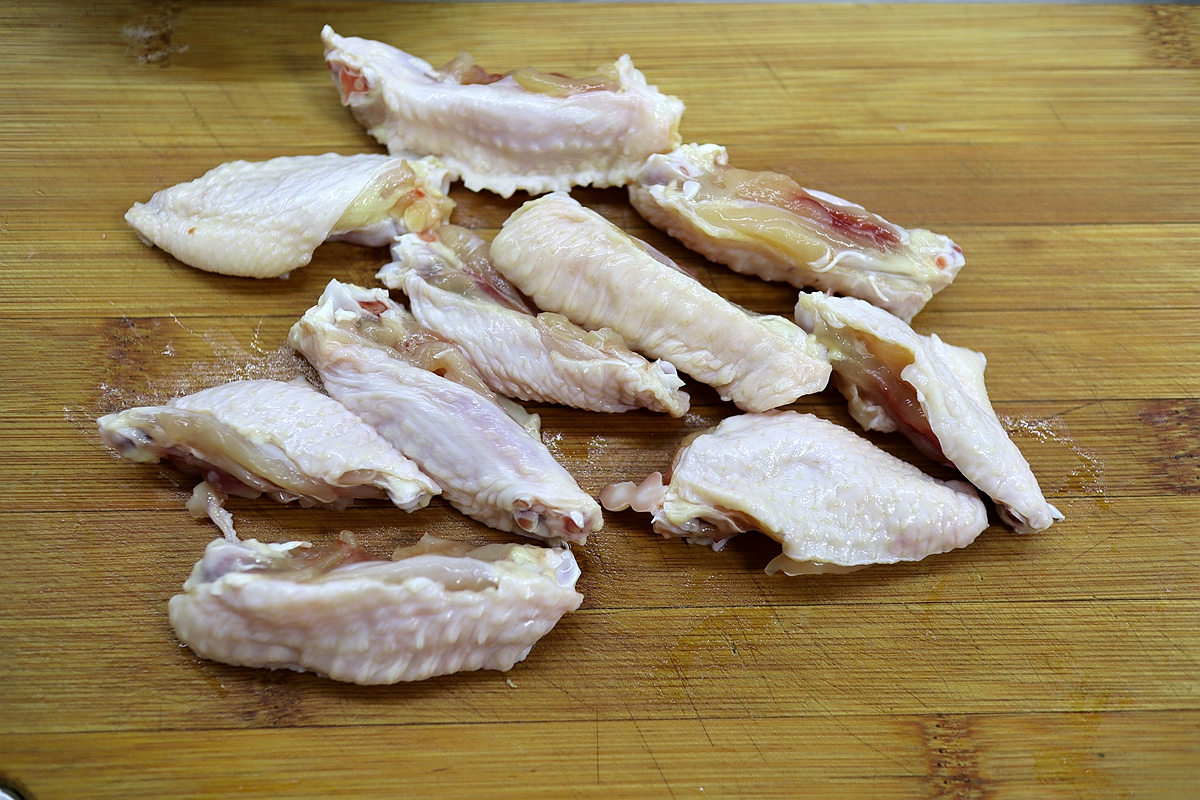 今天的鸡翅是从冰箱里翻腾出来的,不多,只有5个,想要做成一盘菜似乎有点勉强,但是如果继续留在冰箱里,不定又猴年马月才又想起它来。把鸡翅纵剖两半,一下子就由5个变成了“10”个,哈哈哈,我不禁都为自己这急中生智的做法笑抽抽了。正好,还有一把金针菇,组合成一道创意蒸菜。