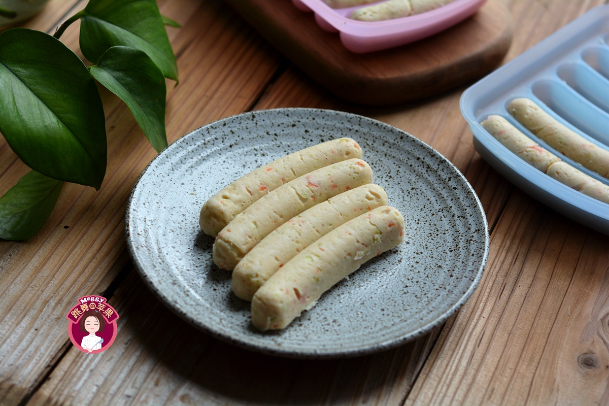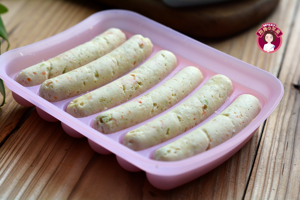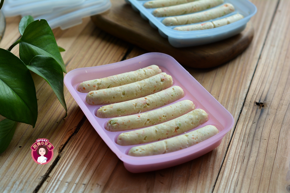 上次的鸡肉肠我放了青豆和鸡蛋清,虽然味淡,但不论从营养上还是口感上都挺受家人喜欢,尤其煎完后夹在三明治中吃还真不错。这次,我又多添置了一个香肠模具,即使量多一点也全部都能做成香肠的模样。多好,不需要肠衣,不需要额外的工具,也不需要长时间灌制,肉泥填满了模具往蒸箱或者蒸锅里一放,半个钟头都不到就新鲜出锅了。