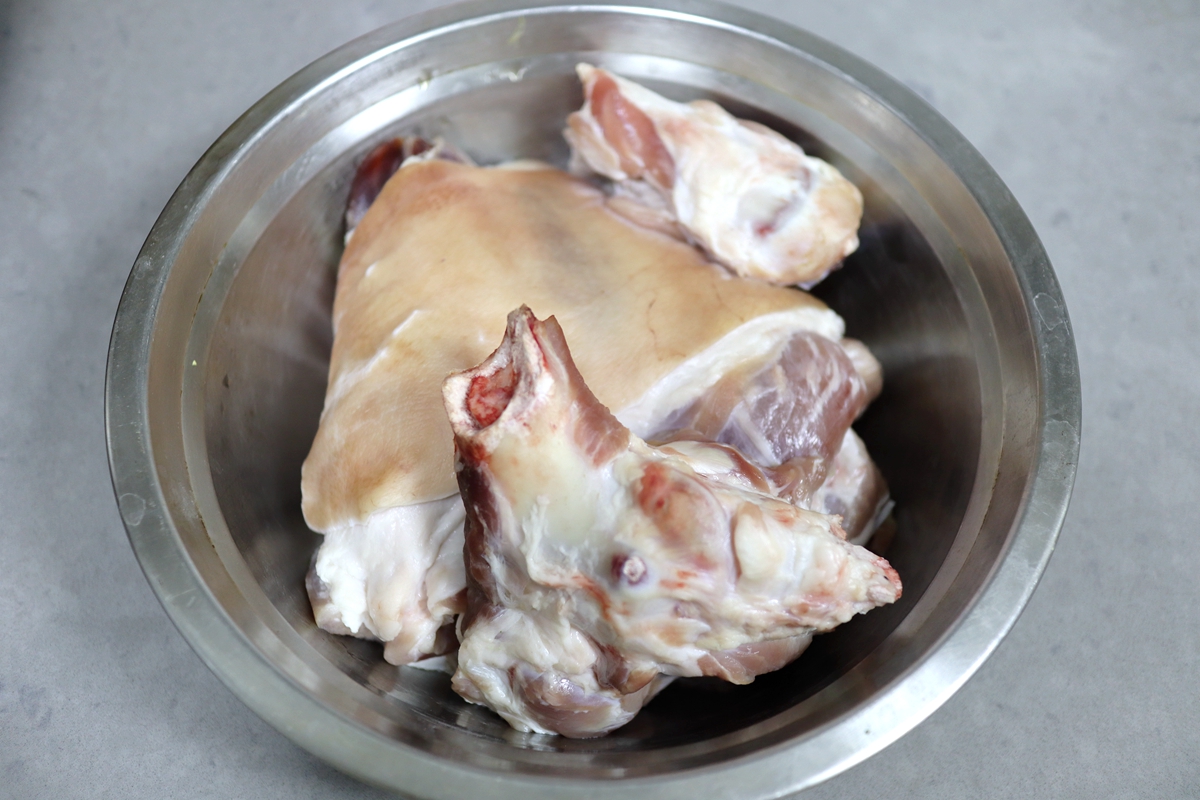 要说肘子真不贵,冬天最便宜的时候才6块钱,哈哈,我说的可不是10年前的价,就是眼么前的价格。现在天热了,肘子的价格也上涨了不少,9块钱一斤。虽说有块大骨头棒子在里面杵着挺占份量,但是比起五花肉、前后臀尖来,还是便宜了不少。而且肘子肉又厚又嫩,支撑着小猪们2、300斤的份量所以瘦肉也吃着倍儿香,再加上外面那一层略带脂肪的皮,嘿,要多好吃有多好吃!