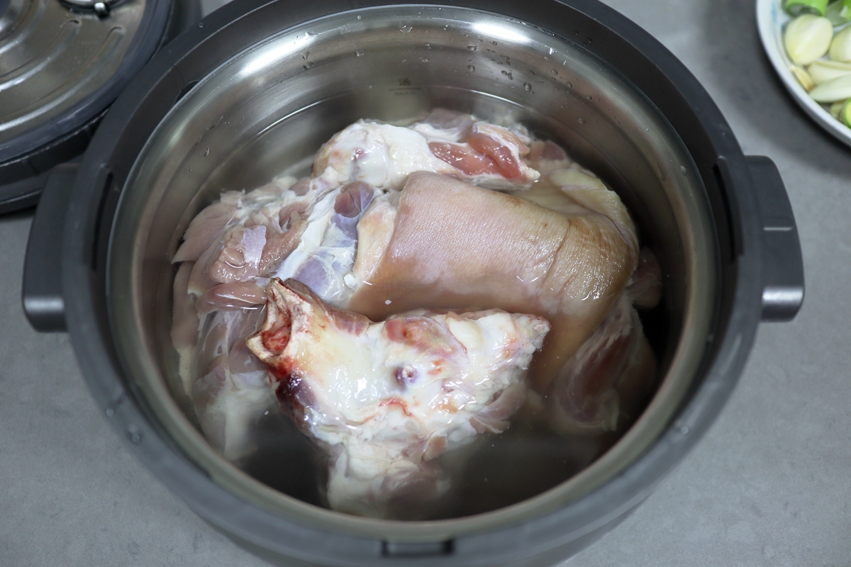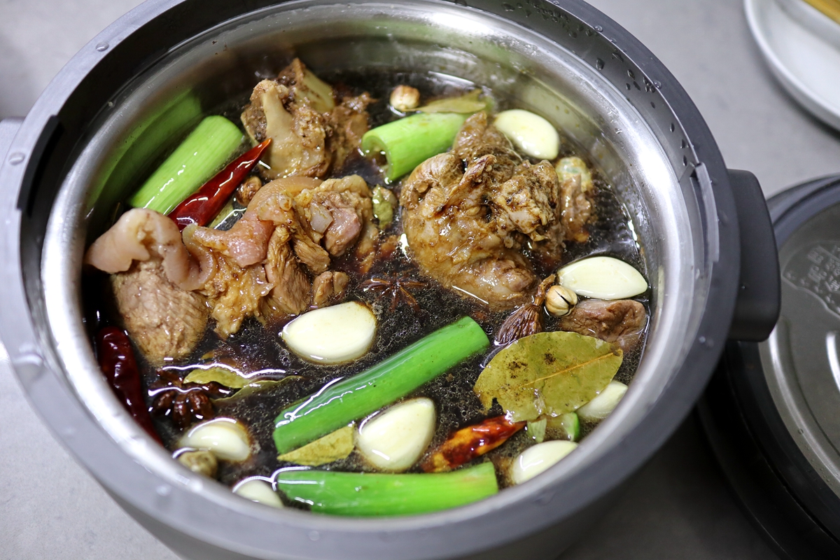 掐指一算有些日子没吃肘子了,特别是烙饼卷肘子,想起来就真流口水。都说“头伏饺子二伏面,三伏烙饼夹鸡蛋”,但三伏还有些天呢,为了给生活一点仪式感,咱先忍着不吃大烙饼。那爷俩叫唤了好几天要吃炖肘子,得,我也麻利一回,先把肘子炖上吧,反正也简单,把材料一股脑儿扔进电饭煲,就等着汤鲜肉烂出锅吧!