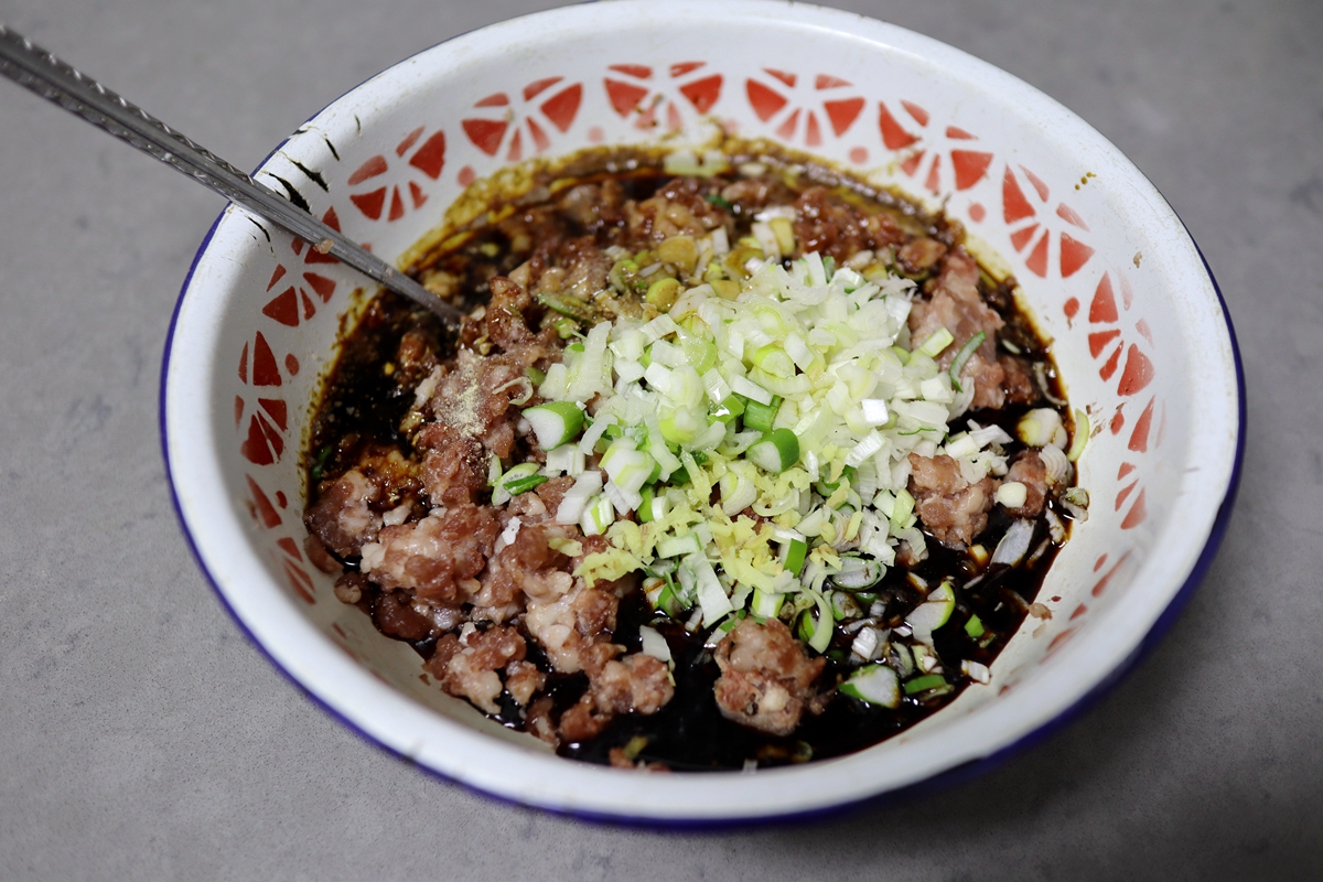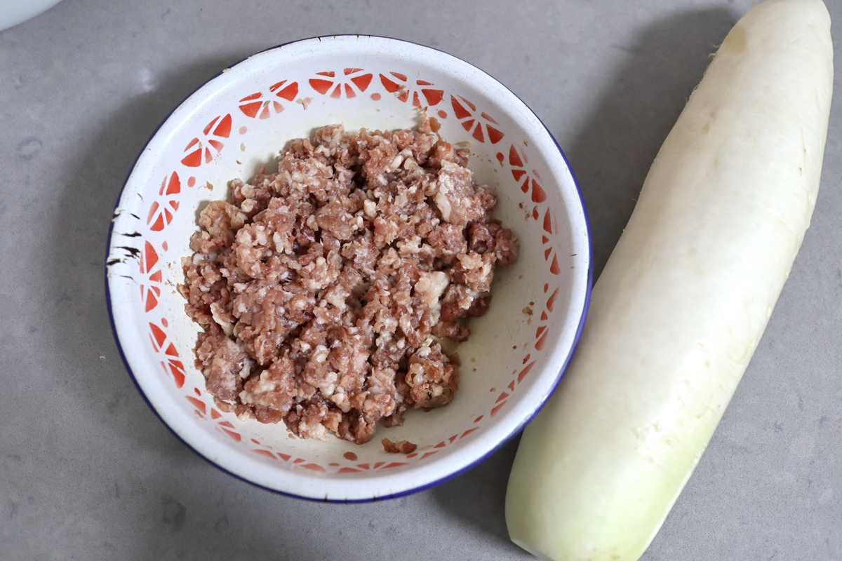 材料:中筋面粉1000克,凉水600克,羊肉馅500克,白萝卜1根,大葱1棵,姜1块,酱油适量,盐适量,粉丝1小把