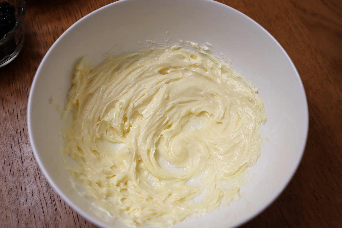 材料:自制浓稠酸奶110克,奶油奶酪110克,细砂糖30克,树莓9颗