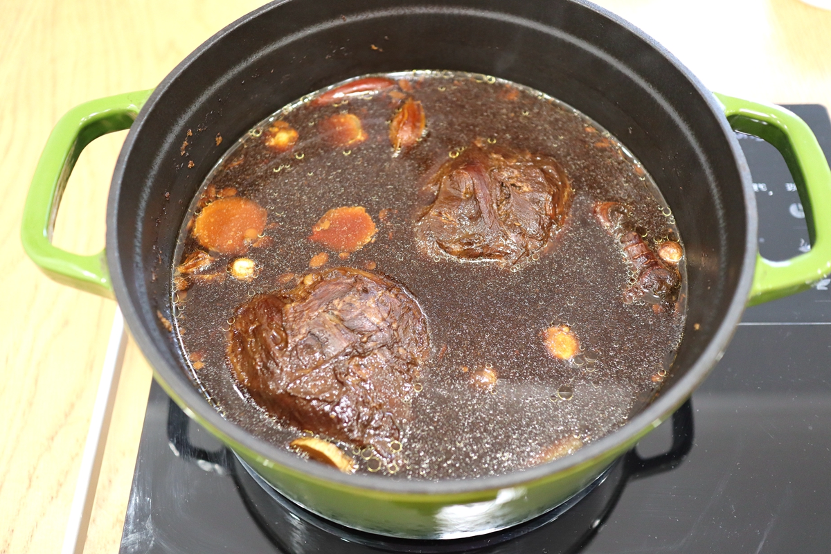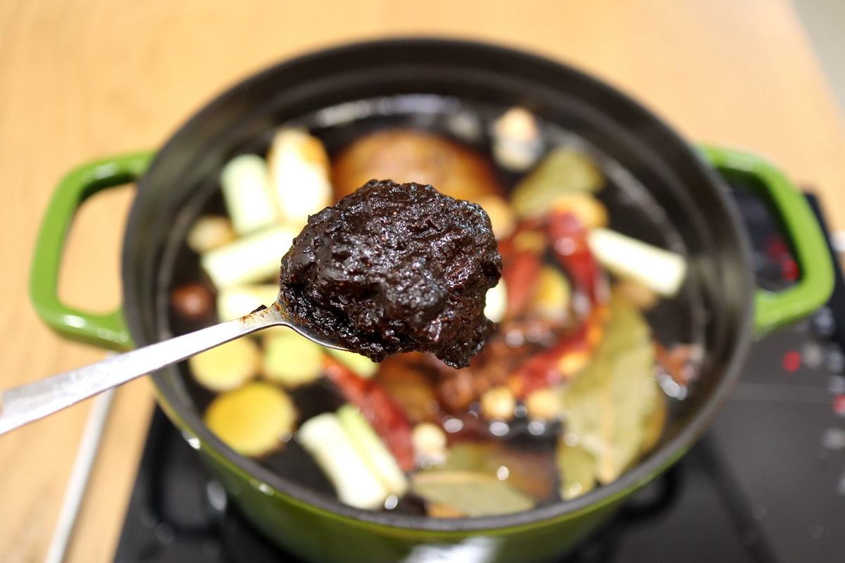 调料:黄豆酱2大勺(约50克),老抽30克,酱油50克,盐5克,大葱半棵,姜1块,桂皮1块,干红辣椒4个,良姜1块,八角2颗,香叶4片,柚子皮1小块,栀子1颗,草果3颗,白蔻5颗,丁香3粒