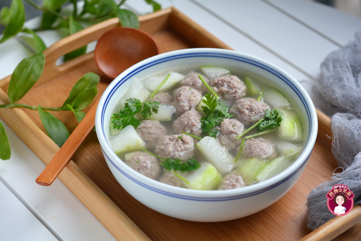 冬瓜羊肉丸子汤,香嫩嫩的。冬瓜有清热利尿的功效,羊肉虽然是热性的食物,但跟冬瓜这么搭配正好中和一下,不怕上火啦,既能及时补充水份,滋润肠胃,也能吃肉解馋!