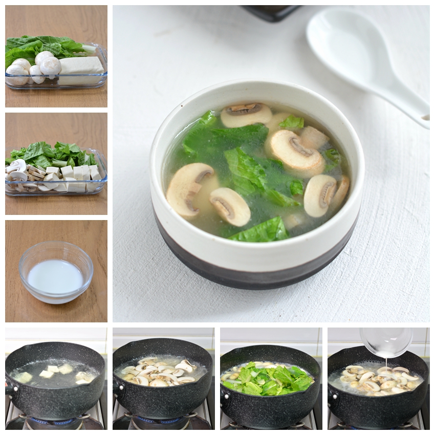【青菜豆腐蘑菇汤】