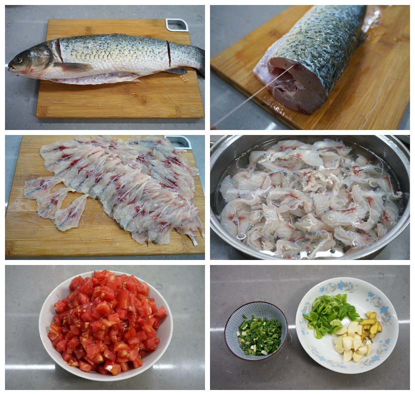 4. 鱼肉中会有一些小刺,把鱼肉用凉水清洗几遍,鱼刺在煮的时候会自动脱落到汤底,即使入口也不扎人的;可以在水中泡几分钟,鱼肉呈现晶莹剔透状;