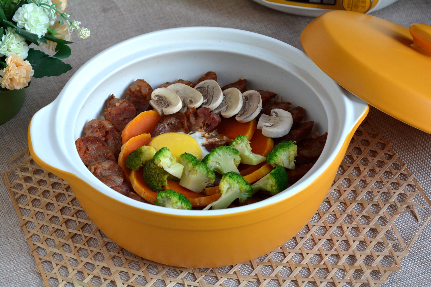 1. 大米适量,清洗干净,入锅中,选择“煲仔饭”程序,用普通的砂锅或者电饭煲也可以噢;