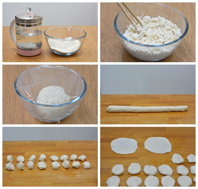 1. 中筋面粉和开水准备好,开水晾几分钟,温度在80-90度最好;