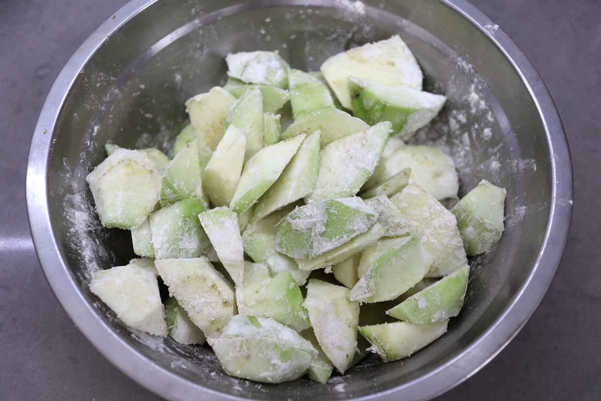 所以,茄子在我眼里不只是蔬菜,更是童年的回忆。茄子吃得多了,方法也不少。有人说想要茄子不黑不吸油,要切完后用水泡,用盐腌,但是这样做就把茄子中的营养物质给流失了不少,而且吃起来还水塌塌的并不香。经过N多种方法的尝试,我终于也“摇身变大厨”了。