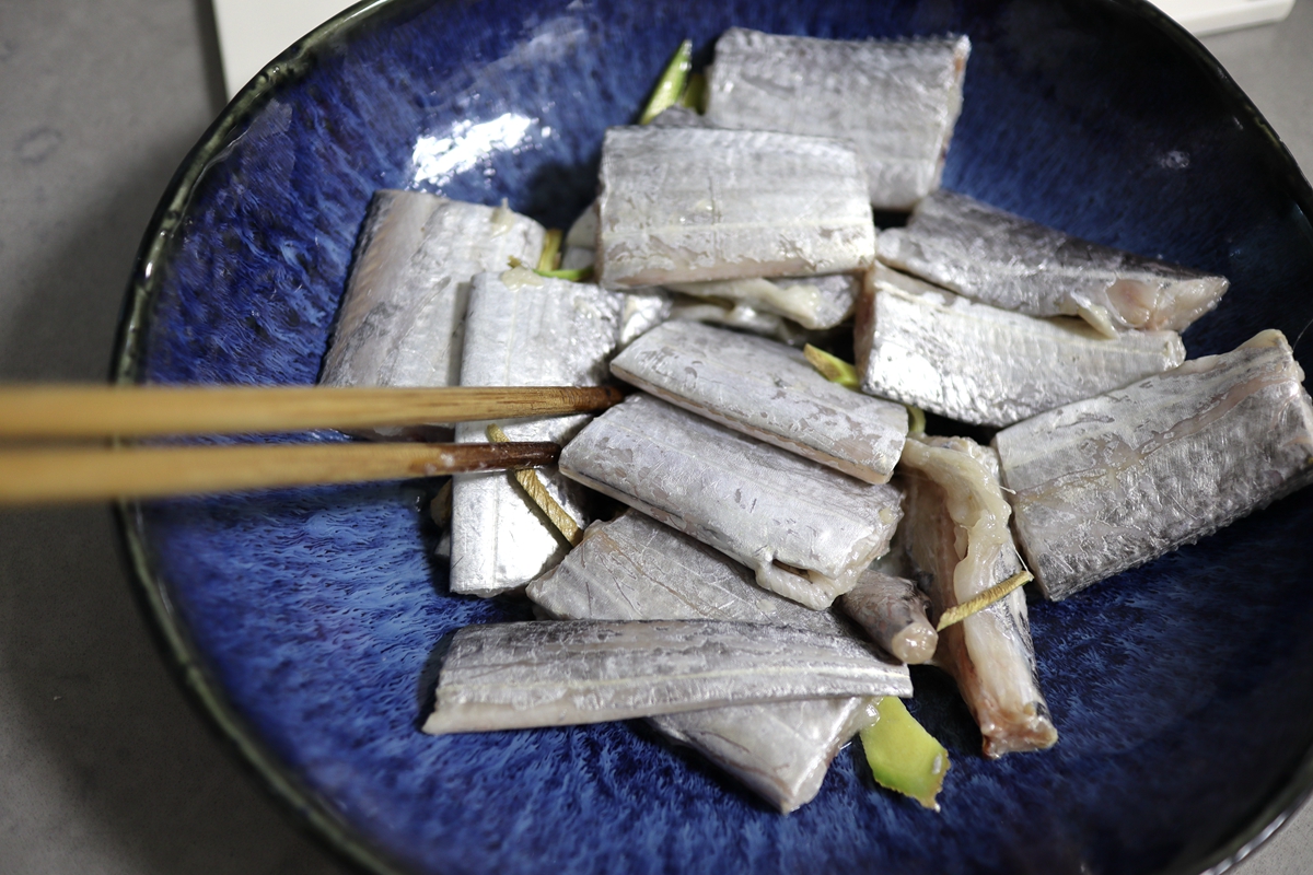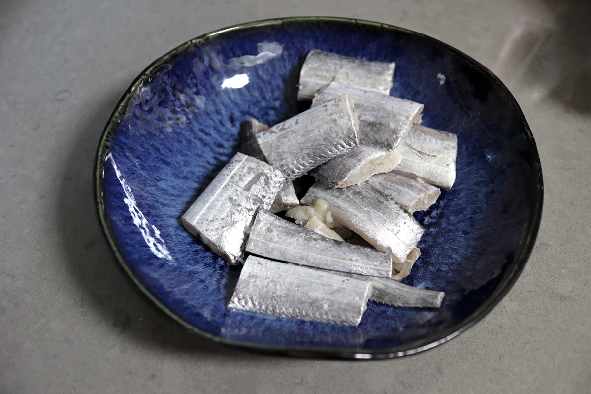 带鱼是我家常吃的海鱼,但由于离着海边远,所以过去的几十年里我吃的带鱼都是冰冻过的。带鱼在我的记忆里是肉厚醇香却有些粗糙发硬的口感,也因此多是红烧、油炸着吃。后来,冰鲜带鱼在市场上出现了,比起冰冻的带鱼,冰鲜的口感更加细嫩了。