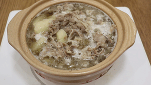 材料:羊肉片300克,山药1段,红薯粉丝2把,青蒜2根,生抽20克,盐2克,白胡椒粉少许,水适量