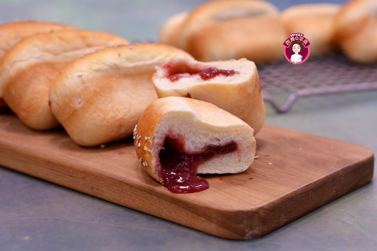 这款小餐包因为包裹了果蔬果酱,一下子就将口感从平庸升级为香甜开胃;还因为用了小热狗连模而整齐划一,外形也萌趣可爱。果酱加热后一咬直爆浆,幸亏是凉吃,要不然还真担心烫伤嘴巴。