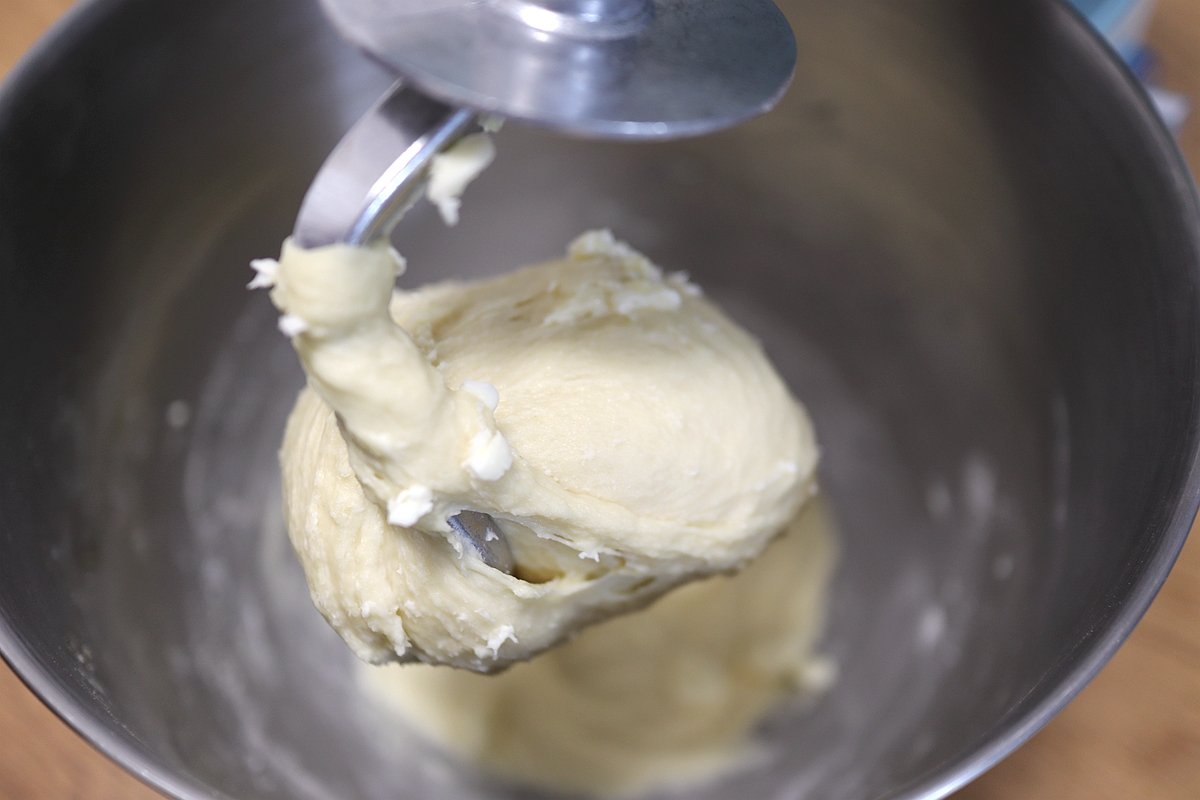 1. 冬天室温低,面团所用的材料不用特别处理,面团打出手套膜的关键在于温度不要高过25度,所以会想尽一切办法来降低或者延续面团因为摩擦而导致的温度升高,比如把所有的材料提前冷藏数小时降温,揉面桶冷藏降温等;