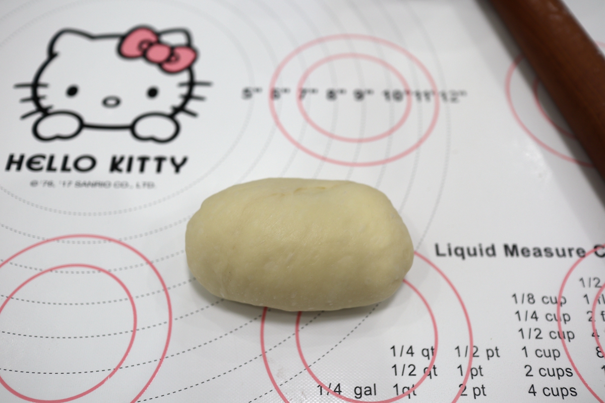 9. 四周向中间聚拢,捏严后搓成椭圆形,比所用的模具略小一些;没有模具可以直接揉成圆球状;