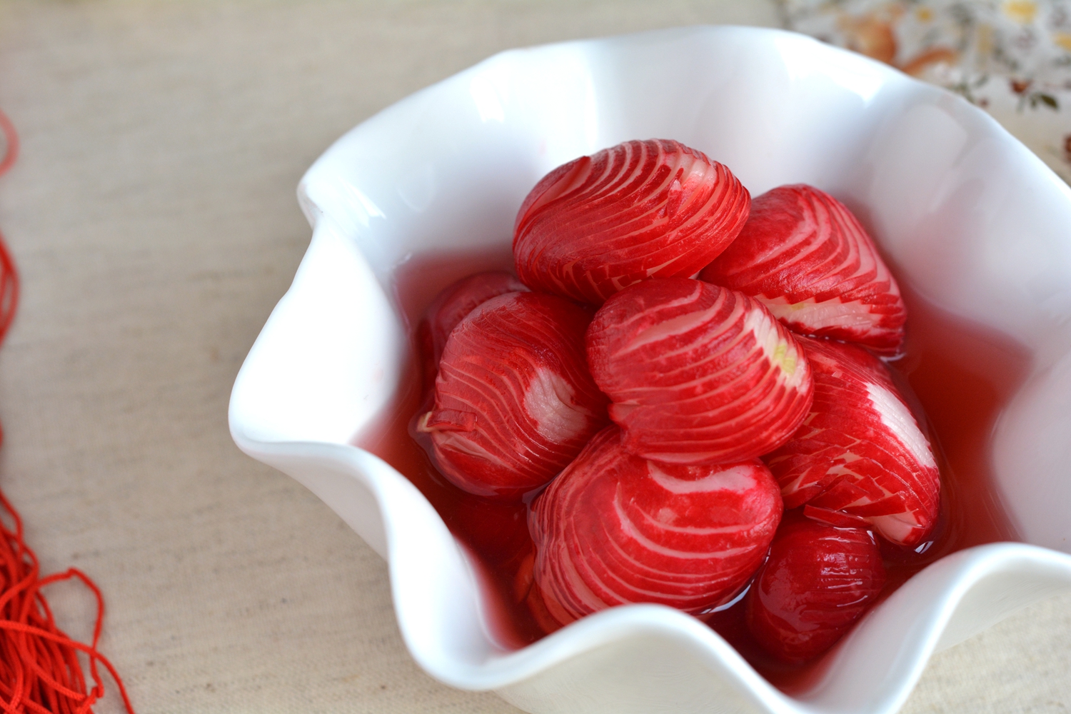 材料:樱桃萝卜16颗,盐1克,白糖两勺,苹果醋适量