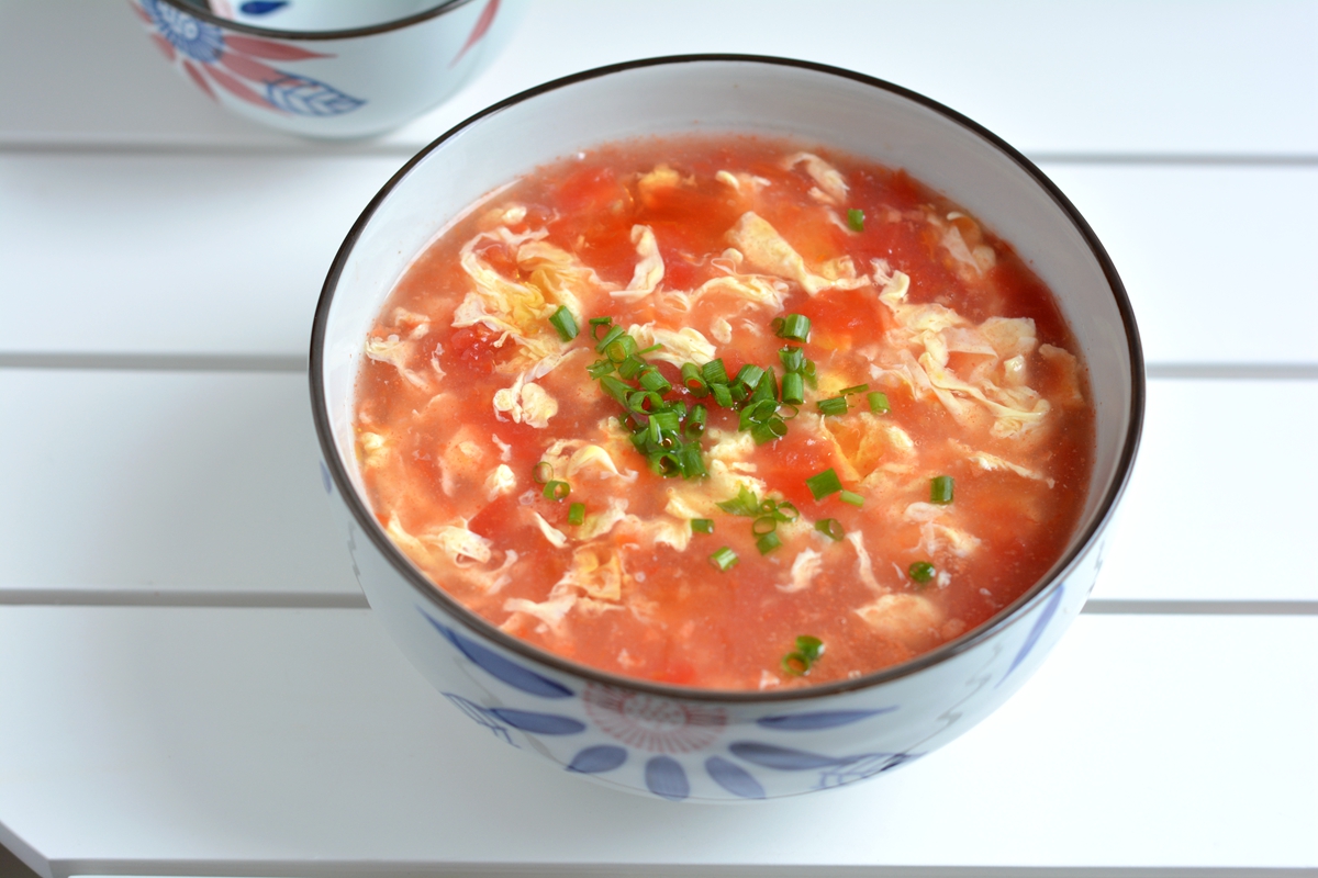 材料:西红柿2个,鸡蛋2个,香葱末少许,淀粉1小勺,淀粉用凉水少许,盐少许,芝麻油少许