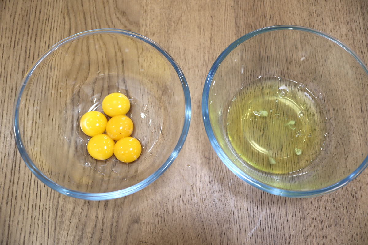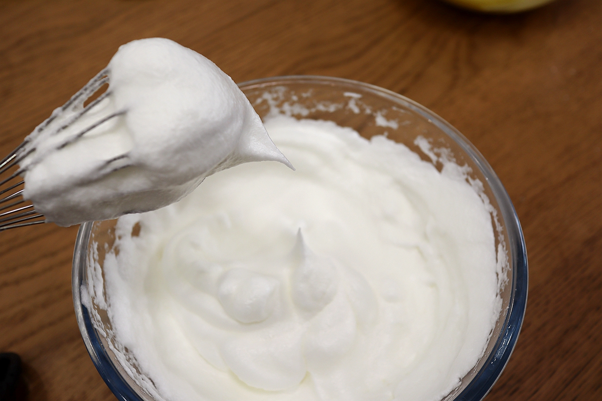 【材料】65克带壳鸡蛋5个,低筋面粉90克,牛奶50克,玉米油40克,蛋白用细砂糖60克