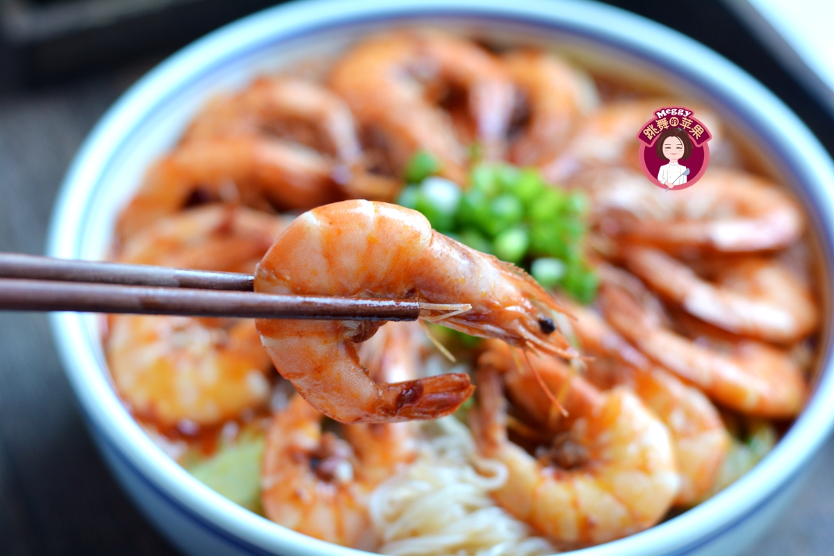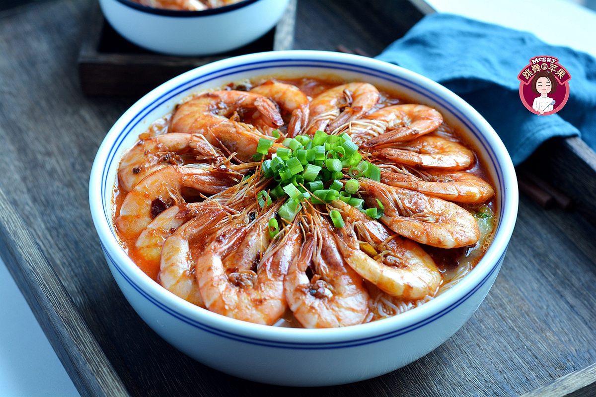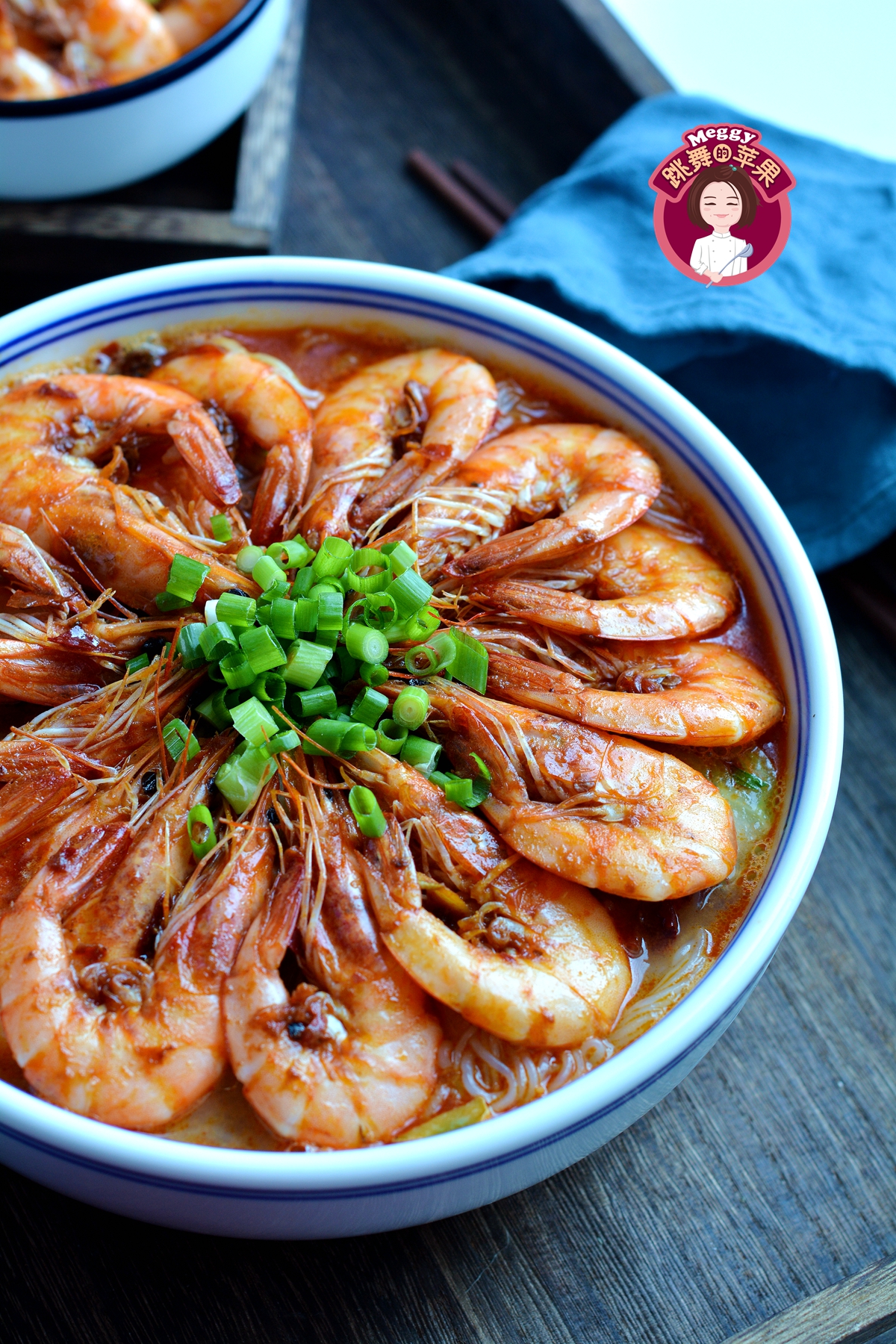 周末全家都在家,我做了一个大虾粉丝煲。大虾是儿子喜欢的,香辣味是老公喜欢的,粉丝是老妈喜欢的,而我喜欢喝汤。但是照顾到孩子不能吃太辣的,所以我只放了一勺豆瓣辣酱,借着这个辣味鲜味,虾也变得火爆的味道。绿豆粉丝因为是淀粉类的,吃它还可以减少一部分主食的摄入。