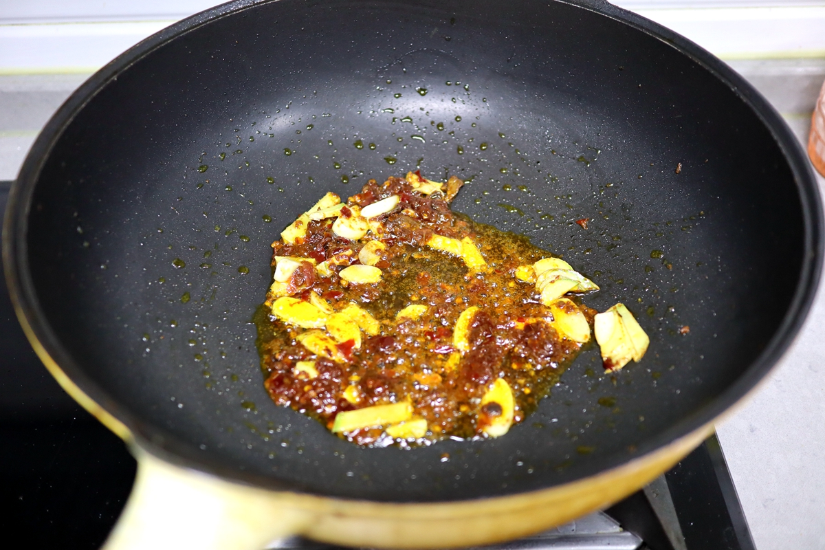 【调料】大蒜2瓣,姜1块,豆瓣辣酱1大勺,盐少许,高汤一碗,清水一碗