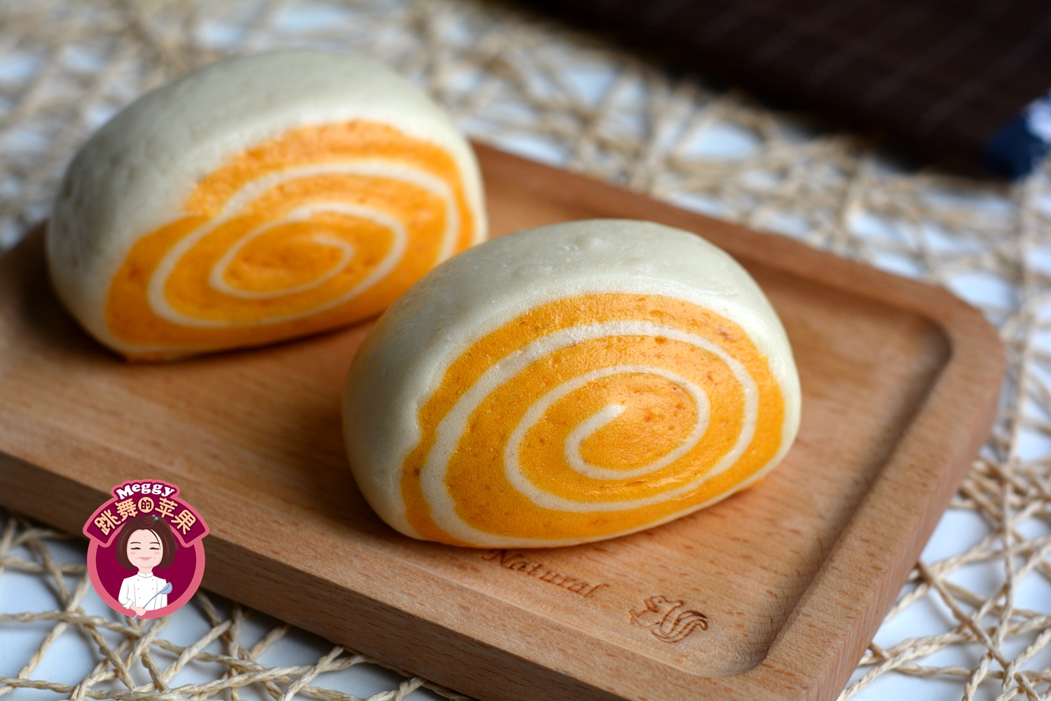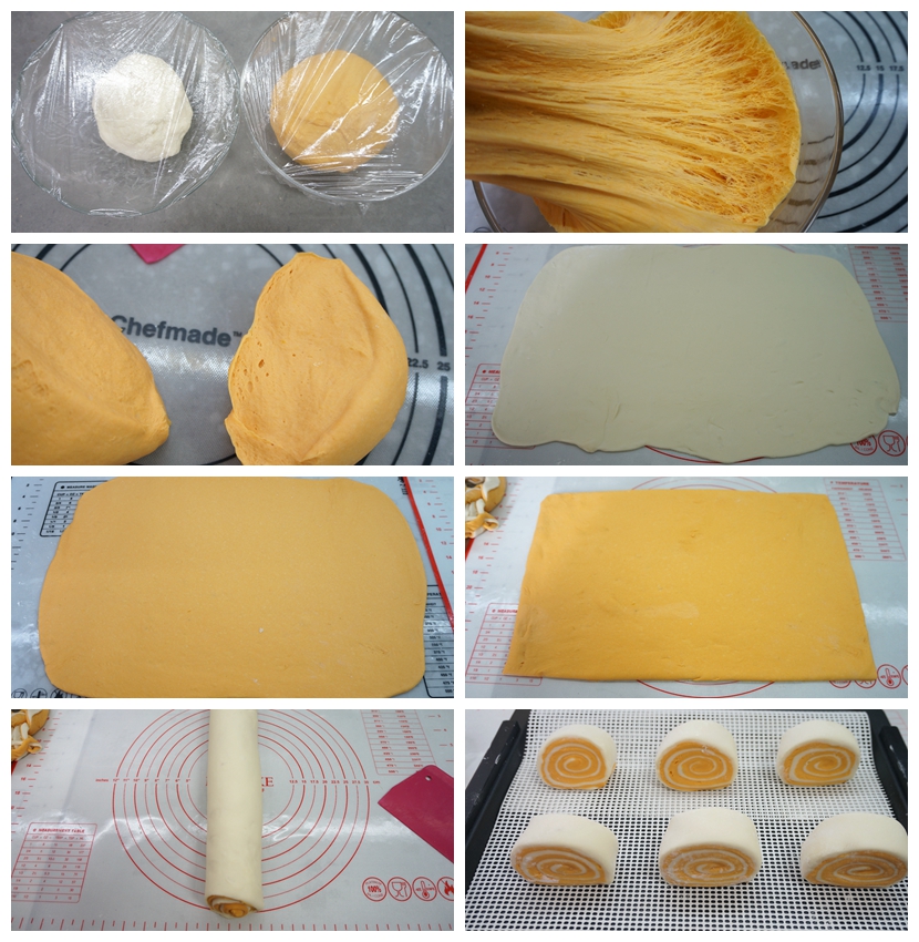 2. 南瓜面团和白面团的比例没有固定的,可多可少;酵母用量是面粉量的1/10左右就可以;