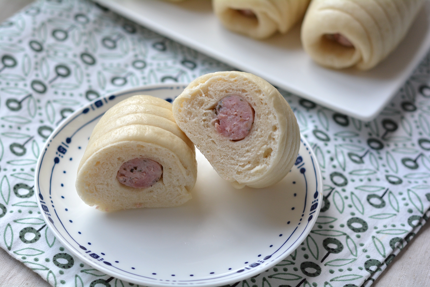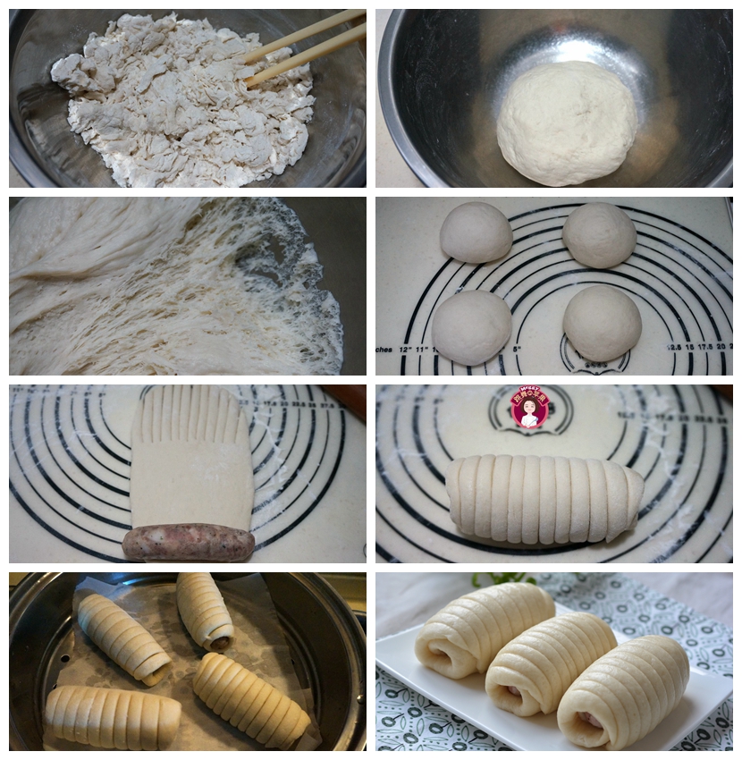【材料】中筋面粉200克,酵母2.5克,白糖6克,清水115克,香肠4根
