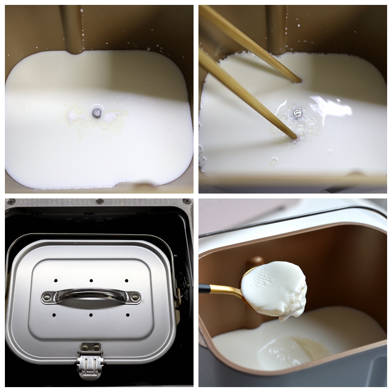 3. 将面包桶放入面包机内,再盖上内盖,选择酸奶程序,默认6小时;