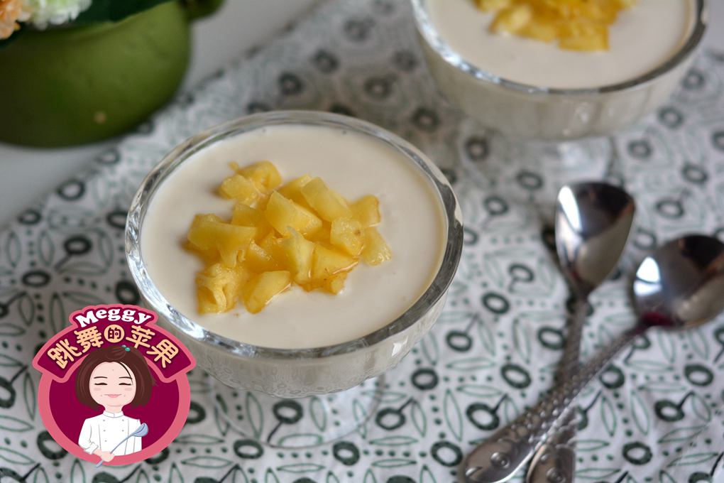 适量的菠萝丁撒上酸奶上,舀一勺入口,酸奶细滑,口味清香。