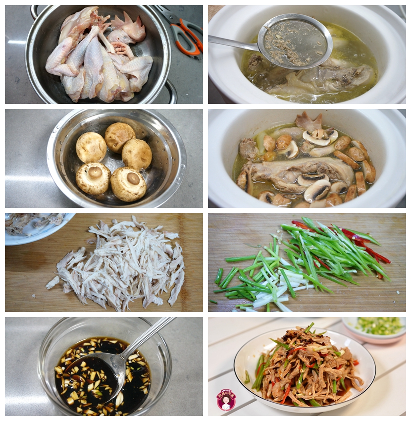 冬天吃鸡肉还能提高免疫力,增强体质。菌菇煲汤煮的鸡肉味道还真香,鸡胸肉拆下撕细条,青红辣椒丝、香葱段入大碗中,将料汁倒入其中,再淋适量辣椒油,这是一酸辣开胃的小菜。