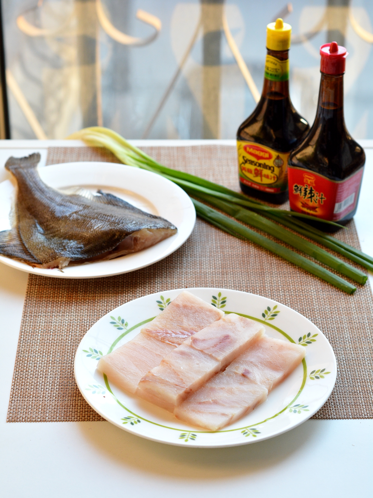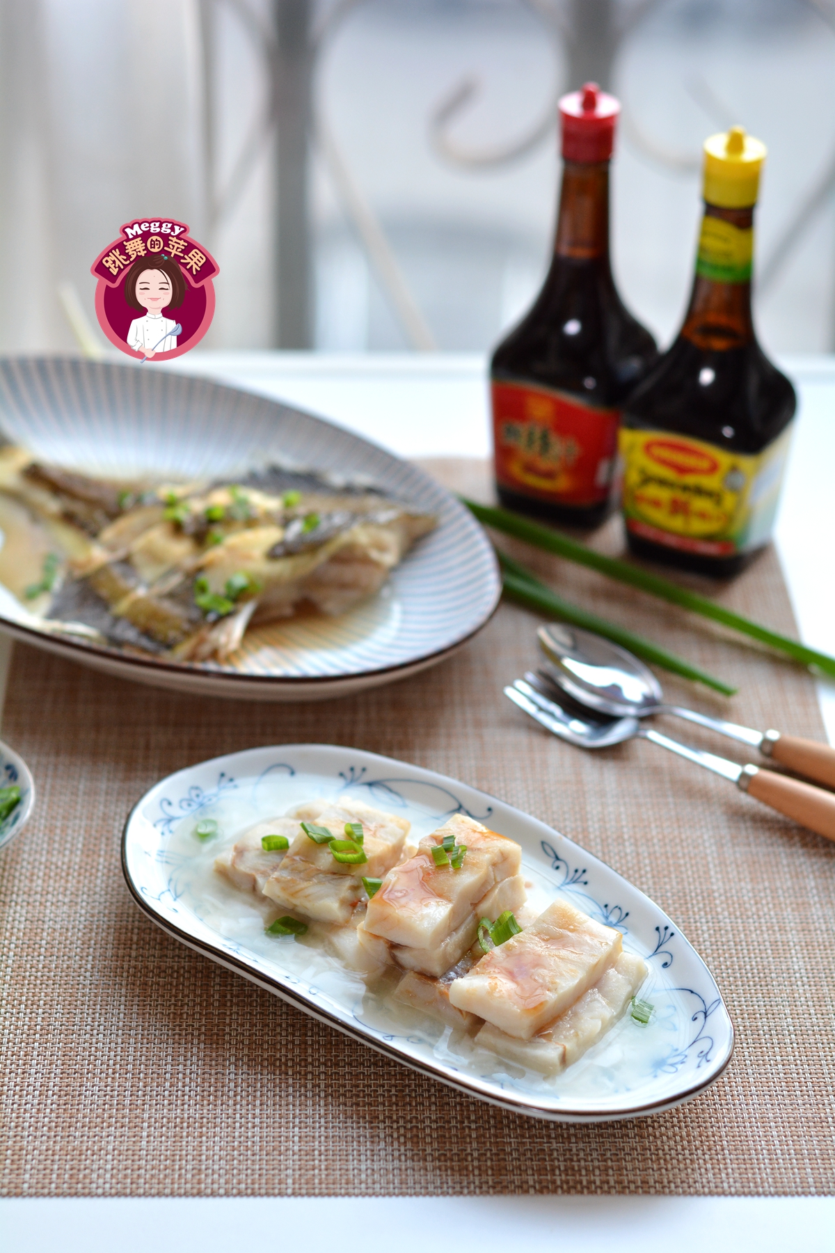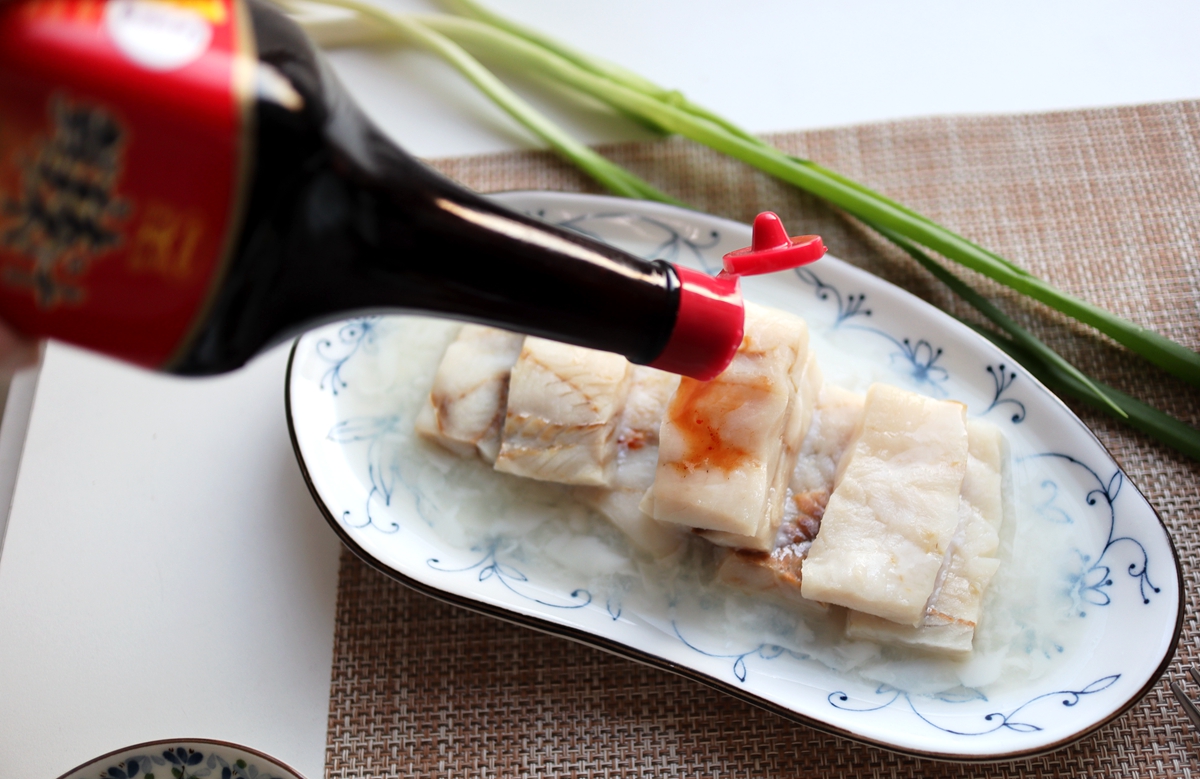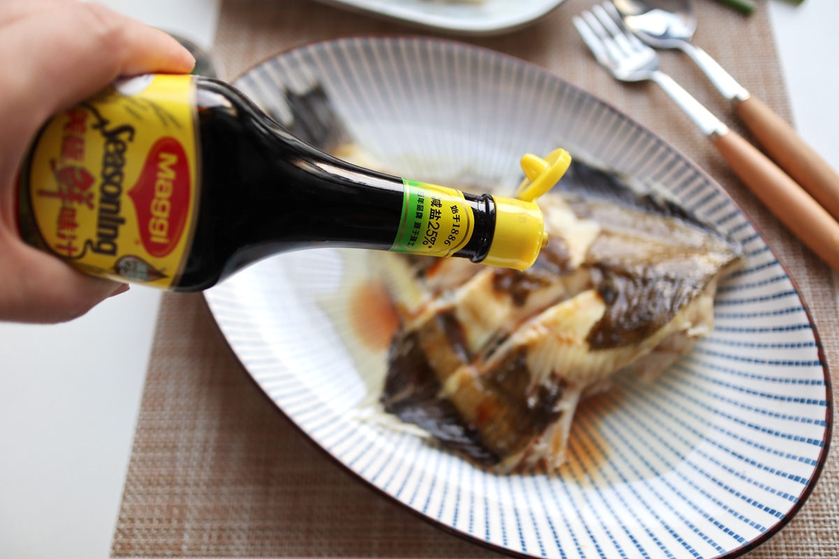 我一次蒸了两种鱼,在味道上稍微做了点儿调整。鲽鱼我用了美极鲜味汁入味,狭鳕鱼我用的美极鲜辣汁入味,微微辣的味道与紧实的肉质相得益彰。