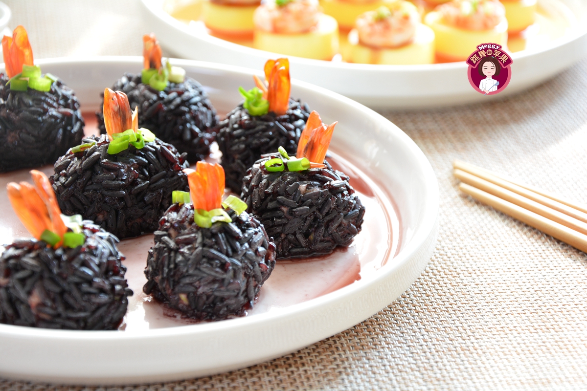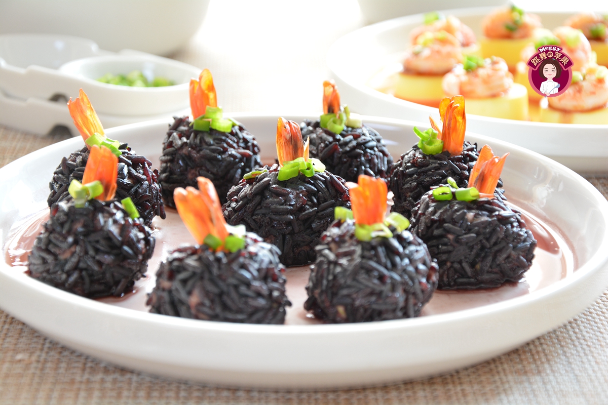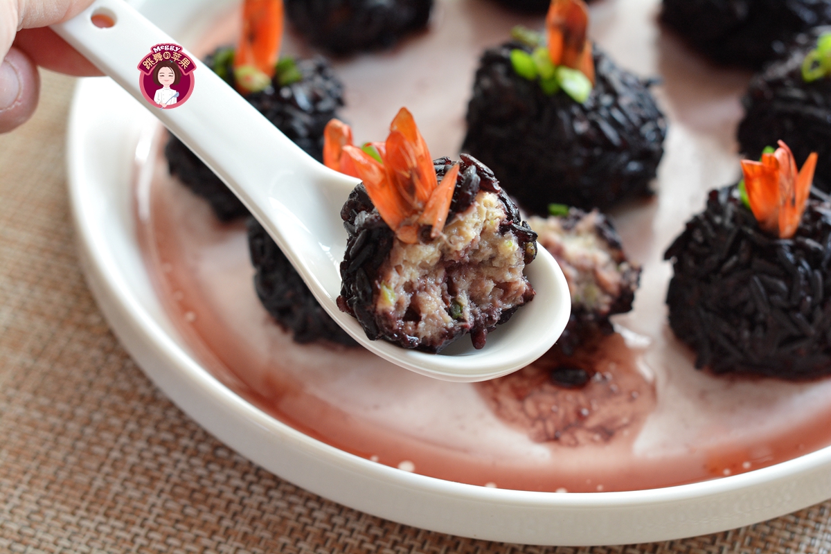 这道黑珍珠丸子创意来自咱们常吃的“珍珠丸子”。因为白糯米唾手可得,所以咱们经常用它来做这道丸子,浑身毛茸茸似白色的珍珠,非常讨喜,既是菜,又能当一部分主食。而我今天要用紫糯米来代替白糯米,虽然是同样的方法,但是不可多见的紫糯米蒸完后却闪着金属般的光泽,很耀眼。正所谓“老菜新做换新颜”!