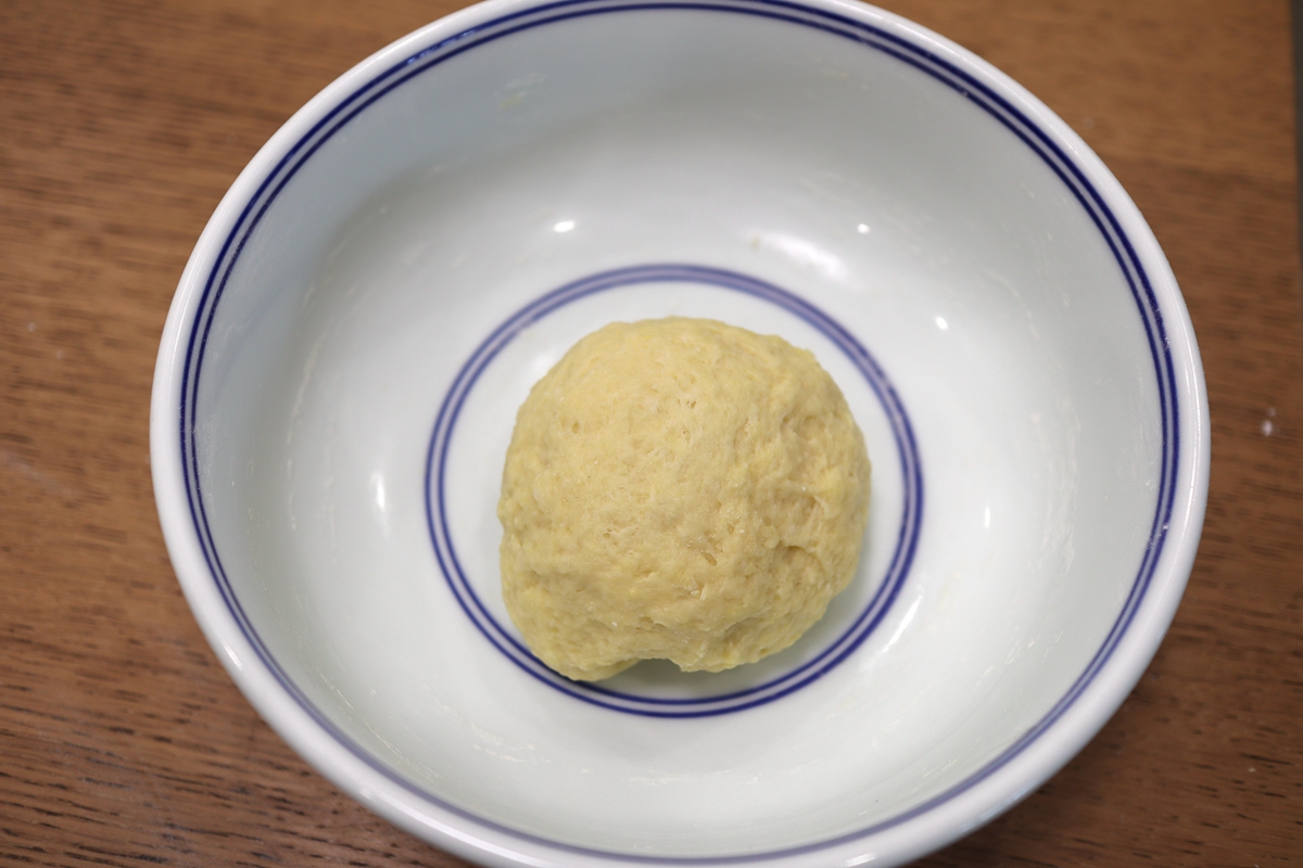 3. 面粉的吸水率不同,鸡蛋也有大有小,所以无法给出具体的面粉用水量,先用鸡蛋与面粉混合成絮状,再根据状态逐量加水,直到能揉成不软不硬的面团;将凉水换成牛奶,味道更醇香;