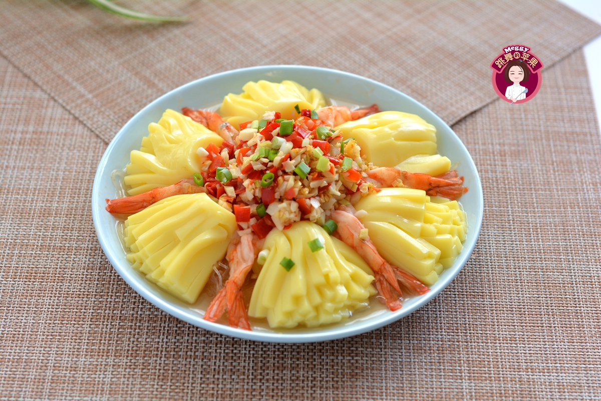 1. 鸡蛋豆腐颜色鲜艳,口感嫩滑,与加热成熟后的虾身红色一对比,视觉效果非常好,漂亮又大气;而且有滋味;如果换成内酯豆腐,在颜色上会逊色些;