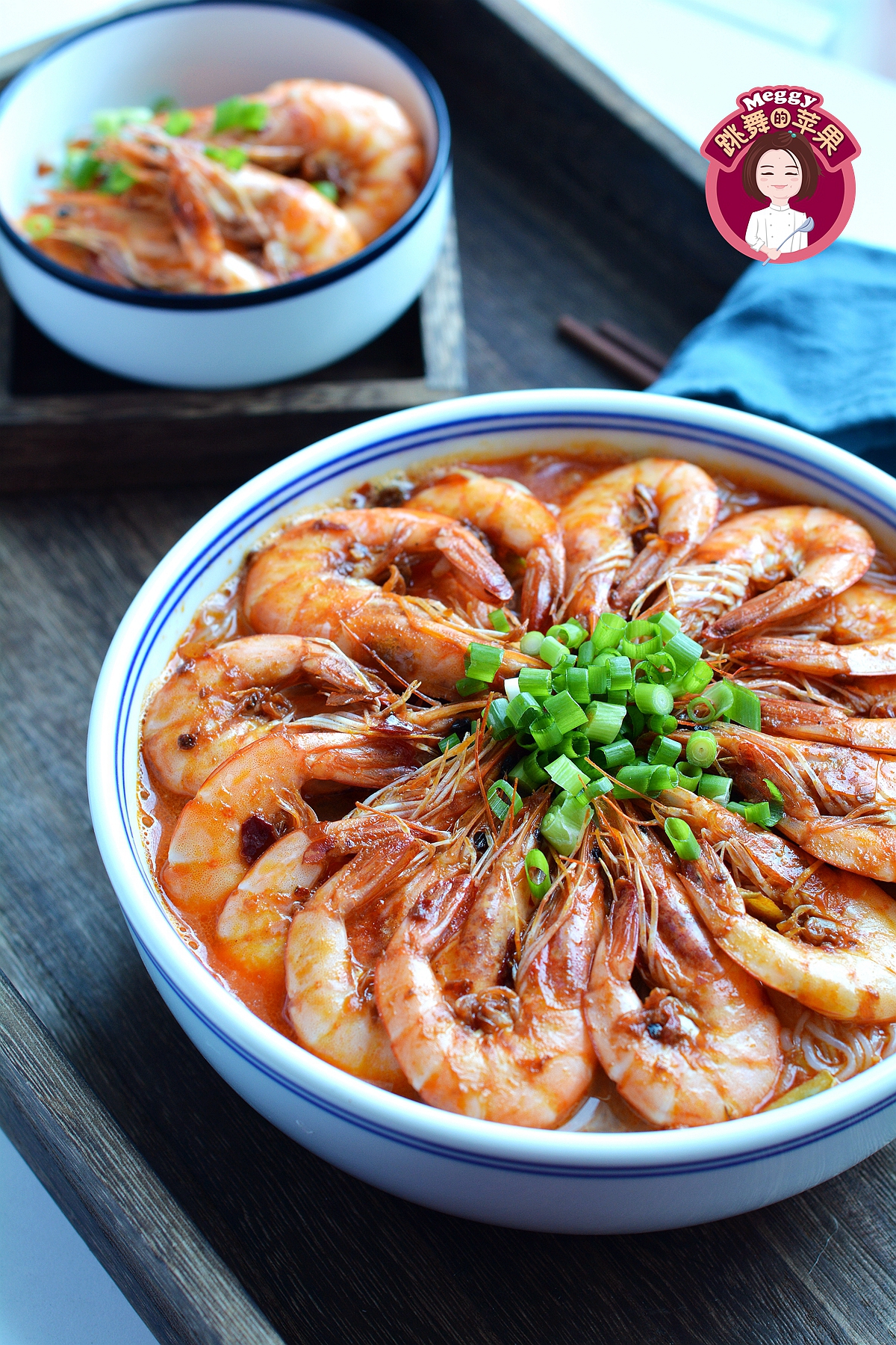 这道香辣大虾粉丝煲,做法简单,味道浓郁,造型优美。因为用了一勺豆瓣辣酱,再加上虾受热之后变红,配上少许的香葱末,整盘菜热闹红火。