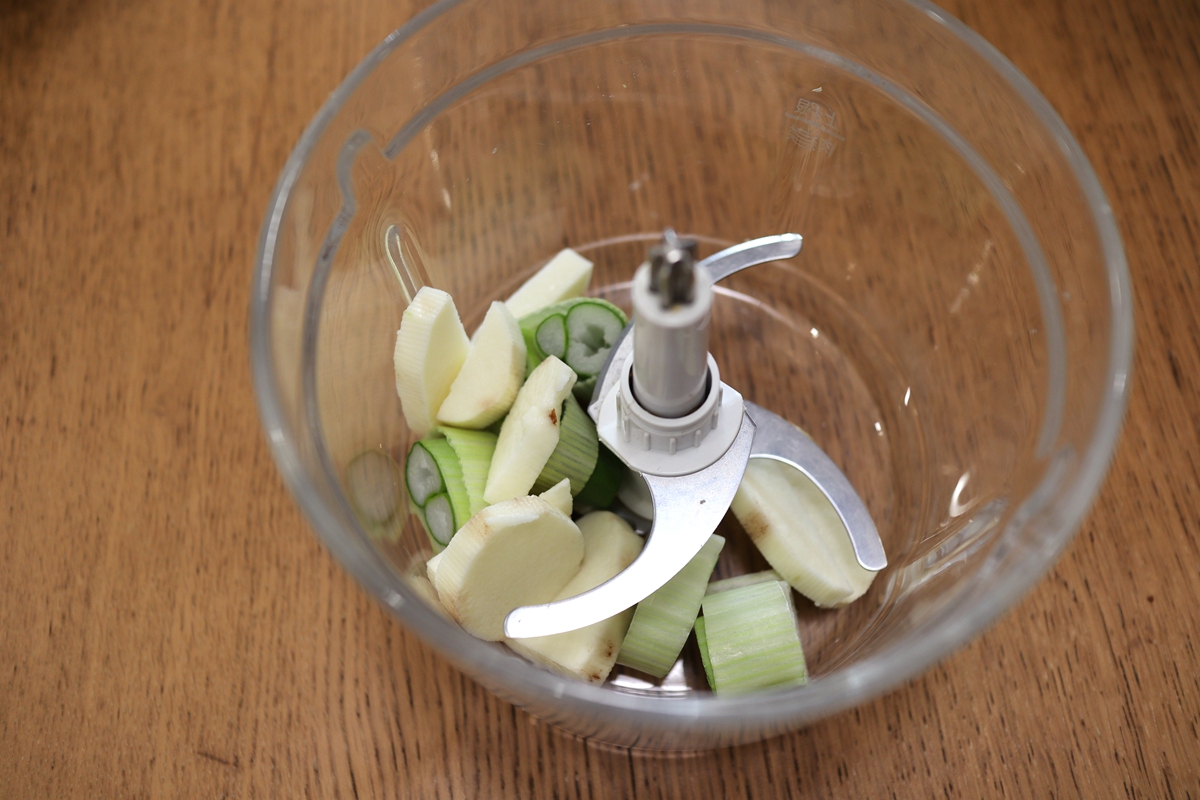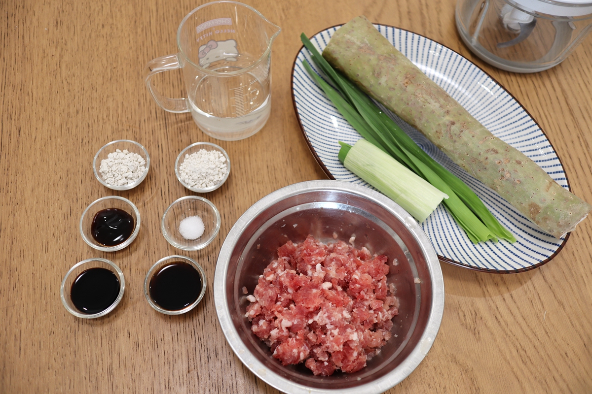 【调料】大葱1段,青蒜叶2片,生抽20克,盐1克,淀粉20克