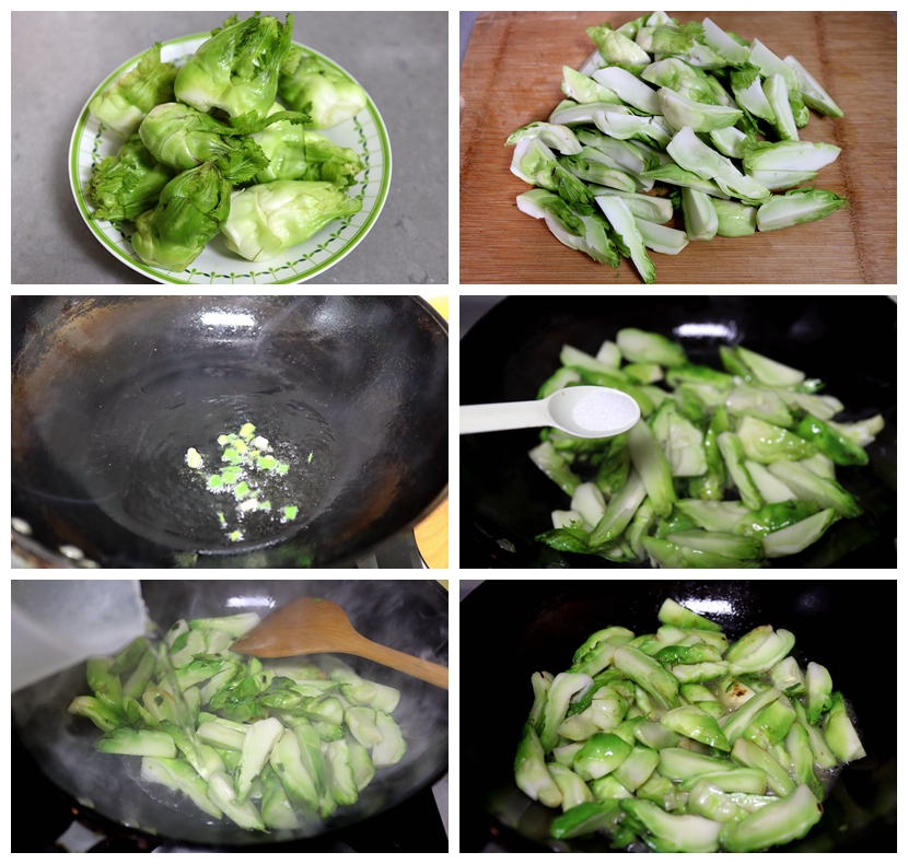 1. 儿菜可以切片,也可以切块,个人感觉切块的口感更好,特别是汁水能够锁在其中,吃起来更觉得鲜嫩;尤其这绿色经过烹煮之后更加鲜绿漂亮,无需加酱油等颜色重的调料;