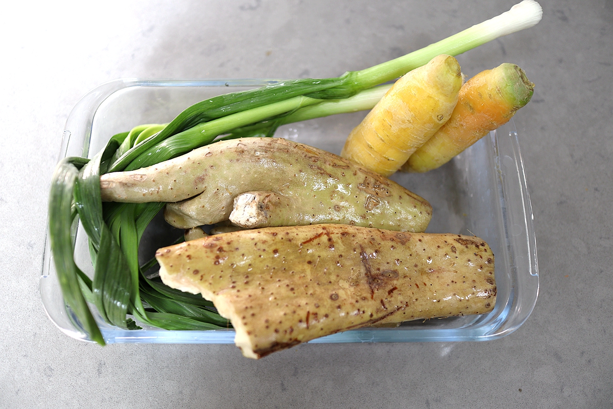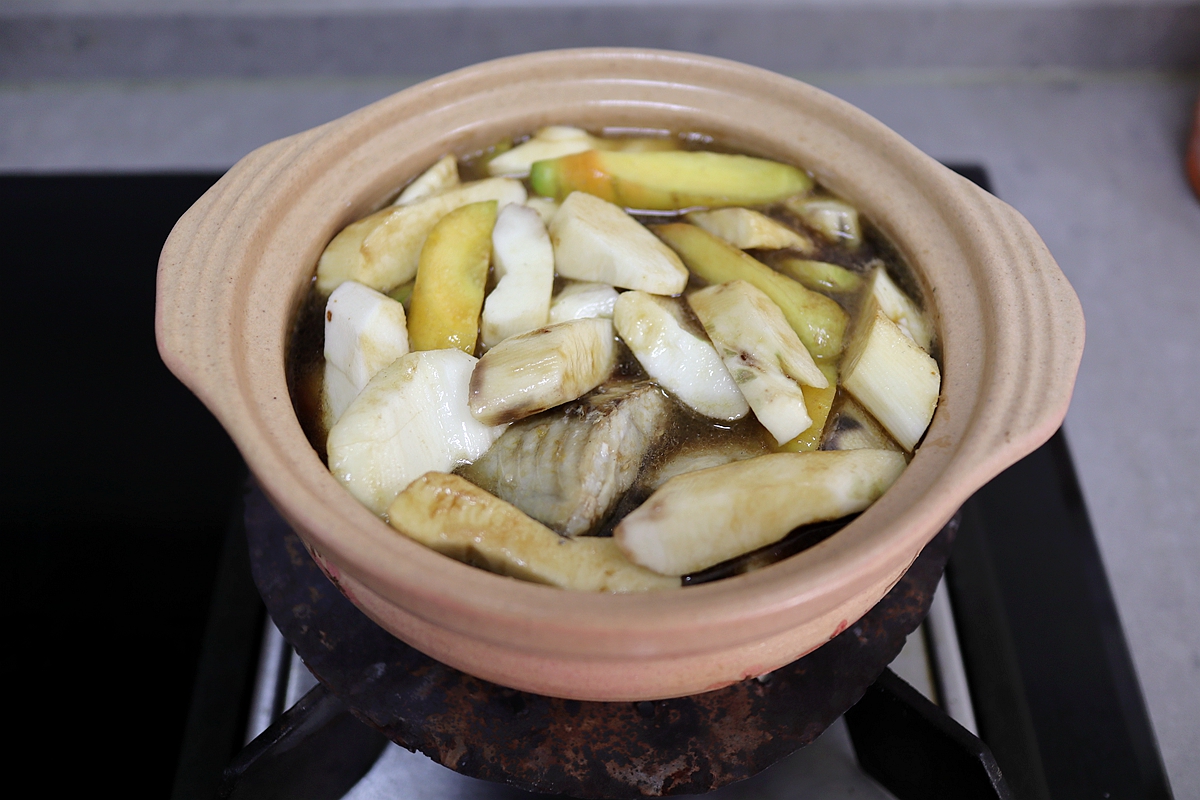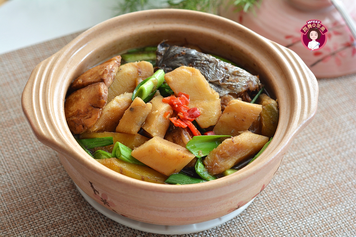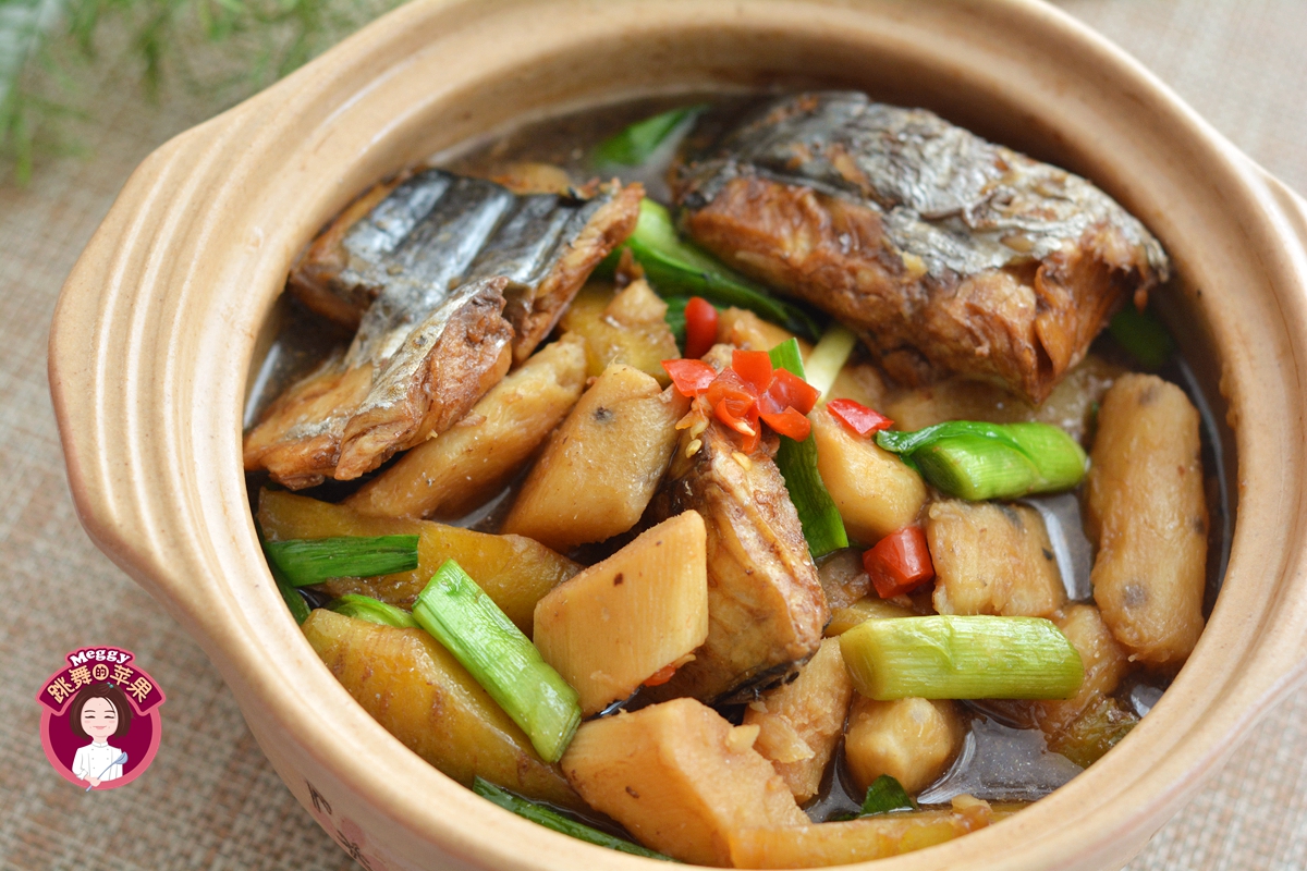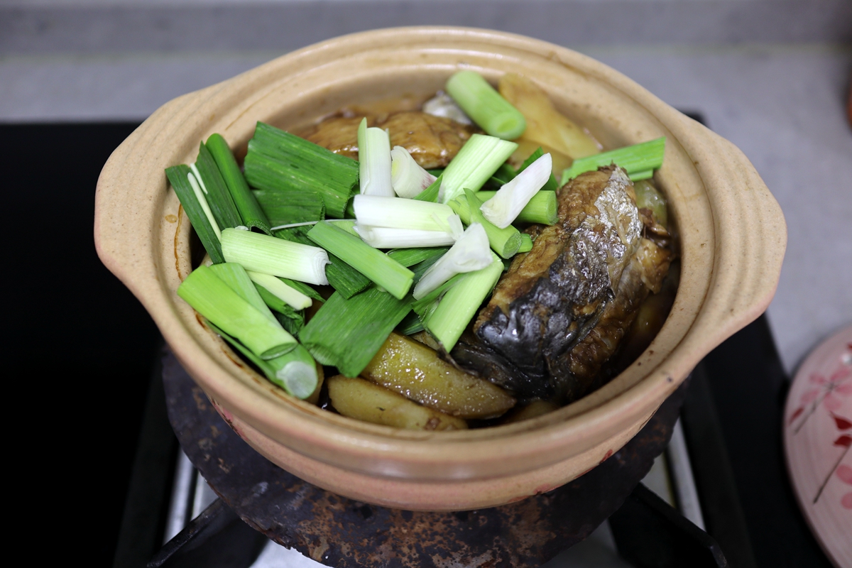 这一大锅菜看着好热闹,红绿黄棕,还有浓厚的汤汁在其中,想必泡米饭或者蘸馒头是极香的!没错,除了山药,我还放了胡萝卜和青蒜。全素的不太受欢迎,所以我用了蛋白质含量极高的海鱼——鲅鱼来提升这锅菜的品质。