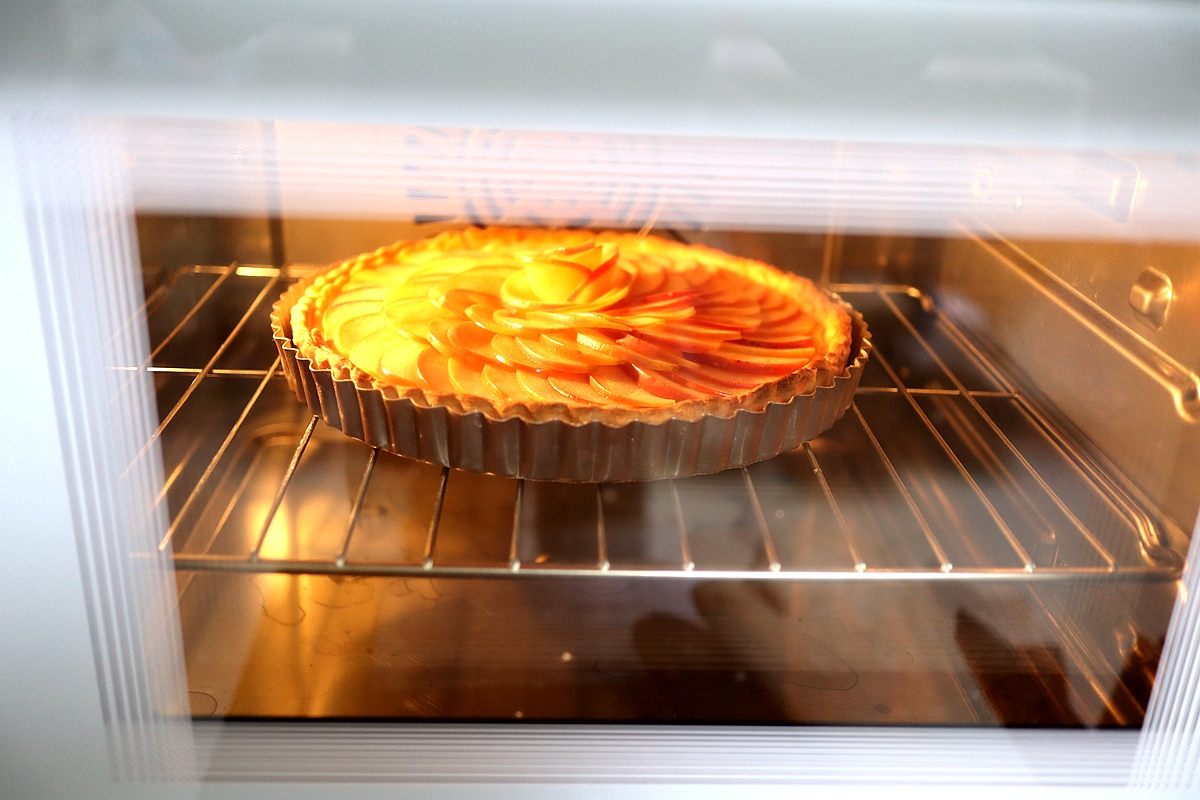 3. 摆苹果片后,上火170度,下火210度,10分钟