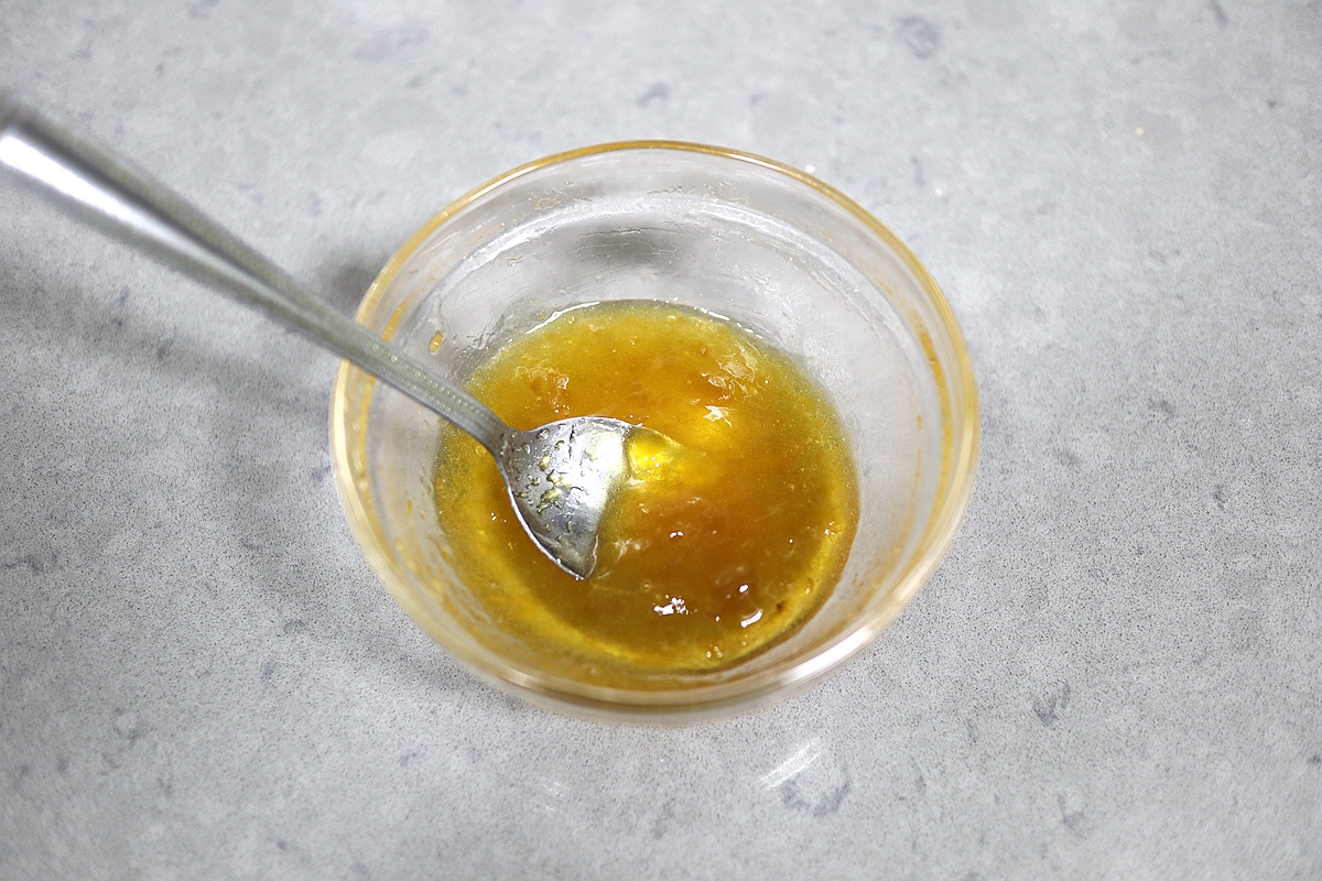 21. 把杏酱加少许纯净水混合均匀,成浓浆状;杏酱比其它果酱更有透明感;