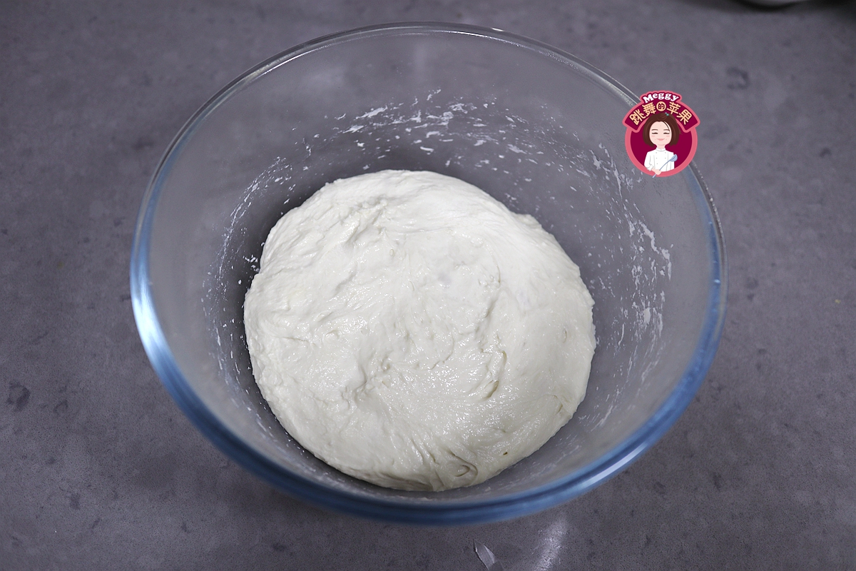 5. 这是第二天早上从冰箱里取出来的面团,面团较头天晚上的更加柔软、滋润了,放在室温下15分钟左右回暖,还能再涨发一些;