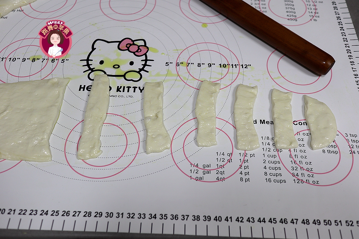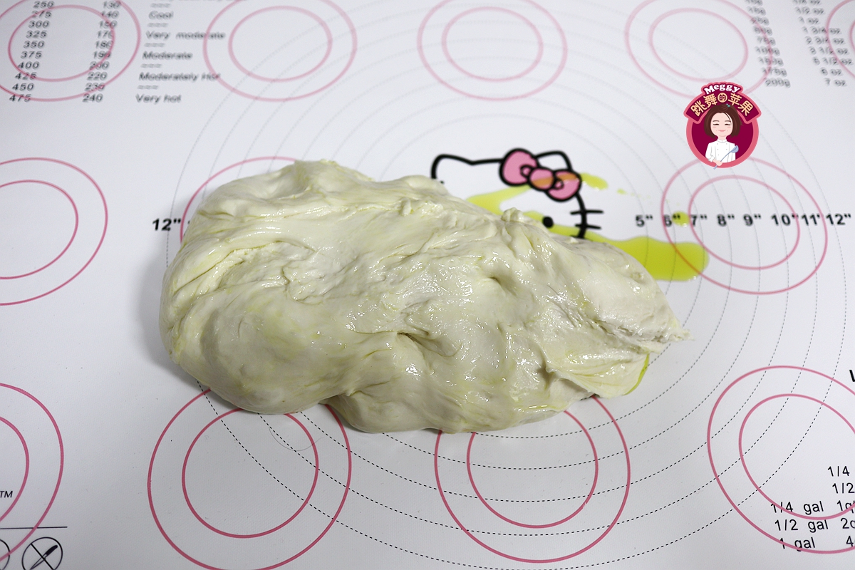 6. 面团上倒少许植物油,把面团从盆里倒出来,放在揉面垫上;没有揉面垫可以放在光滑的案板上,面团不要揉噢;